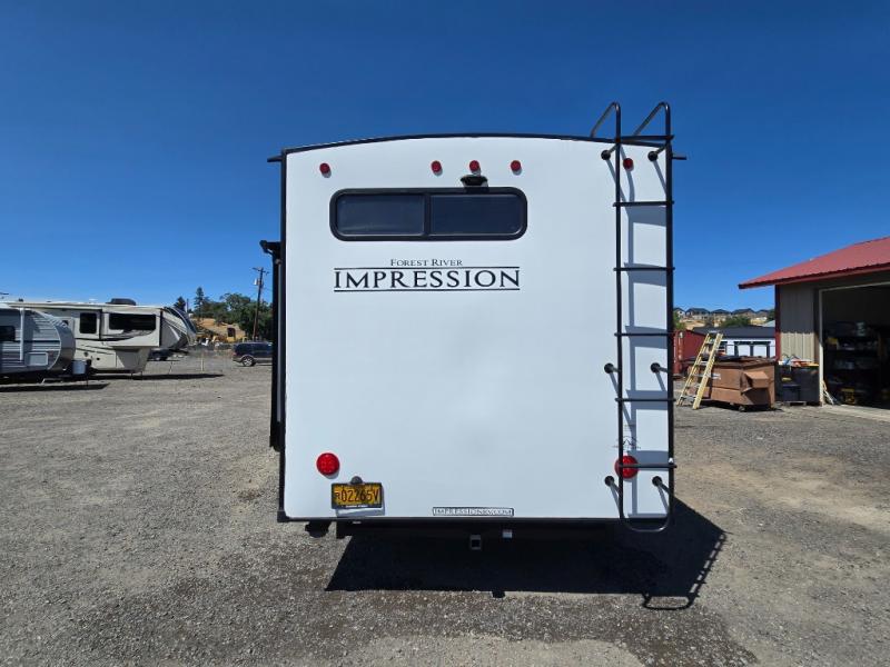 With any Impression mid-profile fifth wheel by Forest River, the focus of the design is comfort and value, built with quality craftsmanship and attention to customer's desires in each Impression! The exterior includes upgraded E-rated Goodyear Endurance tires made in the U.S.A., custom exterior graphics package, and One Touch automatic leveling system for easy setup. There is also an enclosed docking station and a gel coat fiberglass front cap with an automotive windshield with LED lights for style and beautiful views. The fully heated and enclosed AccessiBelly has removable underbelly panels and offers four seasons of travel. The interior has oversized opening windows in the living area for more natural lighting and good air flow, a stainless steel single bowl sink with high rise faucet with a pulldown sprayer to easily clean the dishes, and a porcelain foot flush toilet to mention a few comforts and conveniences.