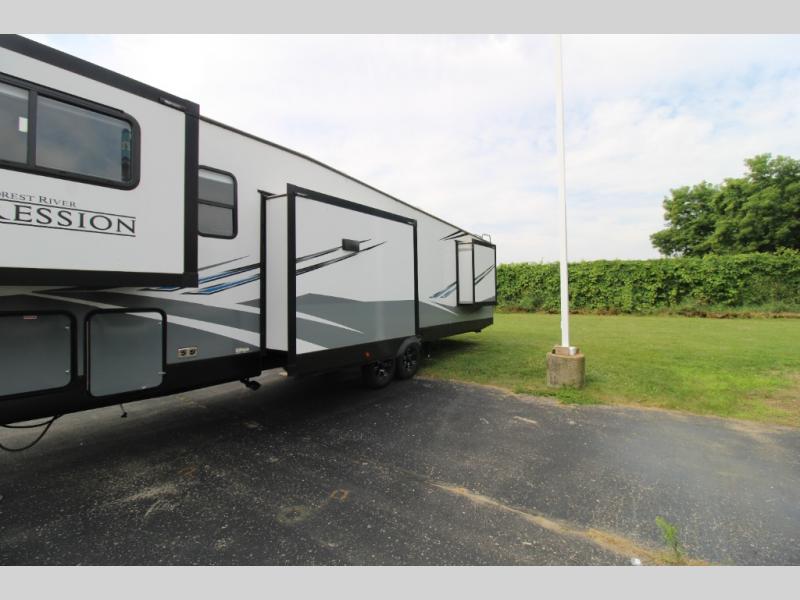 With any Impression mid-profile fifth wheel by Forest River, the focus of the design is comfort and value, built with quality craftsmanship and attention to customer's desires in each Impression! The exterior includes upgraded E-rated Goodyear Endurance tires made in the U.S.A., custom exterior graphics package, and One Touch automatic leveling system for easy setup. There is also an enclosed docking station and a gel coat fiberglass front cap with an automotive windshield with LED lights for style and beautiful views. The fully heated and enclosed AccessiBelly has removable underbelly panels and offers four seasons of travel. The interior has oversized opening windows in the living area for more natural lighting and good air flow, a stainless steel single bowl sink with high rise faucet with a pulldown sprayer to easily clean the dishes, and a porcelain foot flush toilet to mention a few comforts and conveniences.