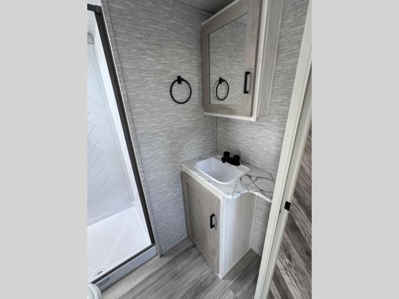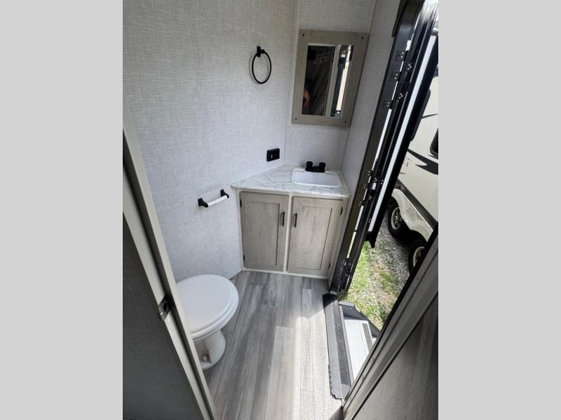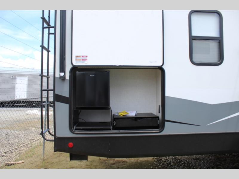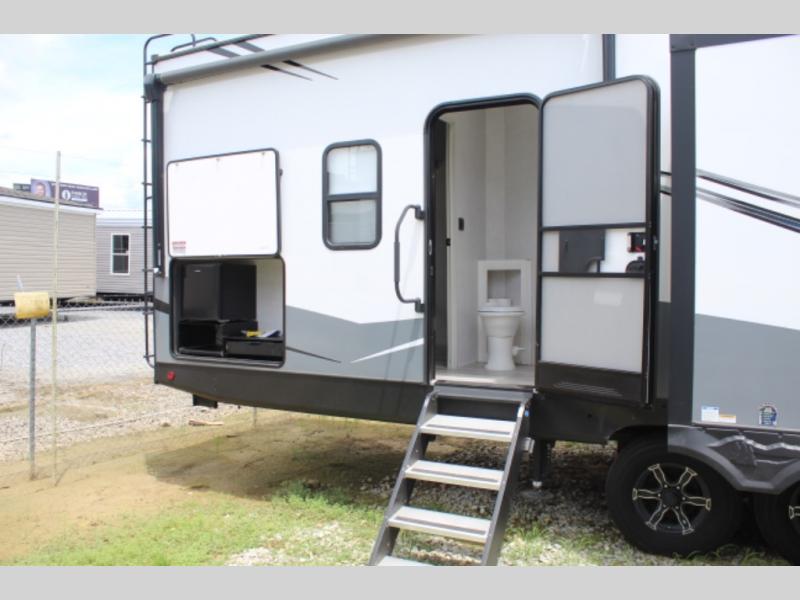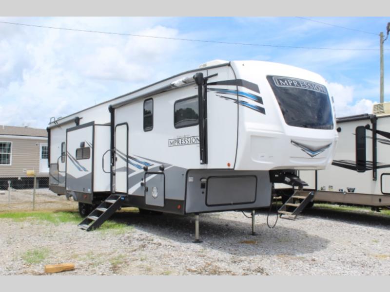 With any Impression mid-profile fifth wheel by Forest River, the focus of the design is comfort and value, built with quality craftsmanship and attention to customer's desires in each Impression! The exterior includes upgraded E-rated Goodyear Endurance tires made in the U.S.A., custom exterior graphics package, and One Touch automatic leveling system for easy setup. There is also an enclosed docking station and a gel coat fiberglass front cap with an automotive windshield with LED lights for style and beautiful views. The fully heated and enclosed AccessiBelly has removable underbelly panels and offers four seasons of travel. The interior has oversized opening windows in the living area for more natural lighting and good air flow, a stainless steel single bowl sink with high rise faucet with a pulldown sprayer to easily clean the dishes, and a porcelain foot flush toilet to mention a few comforts and conveniences.