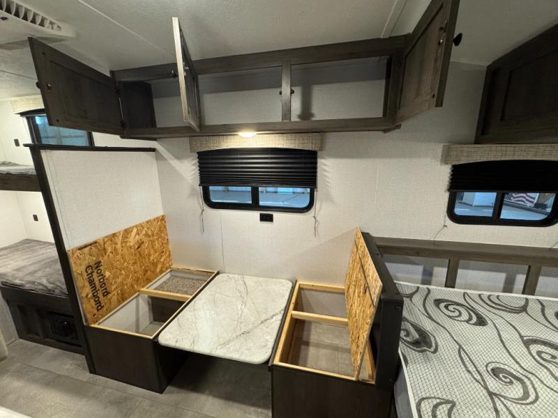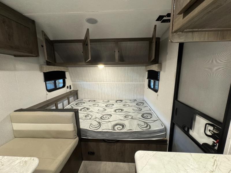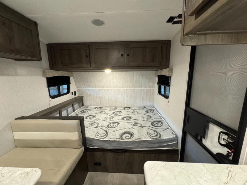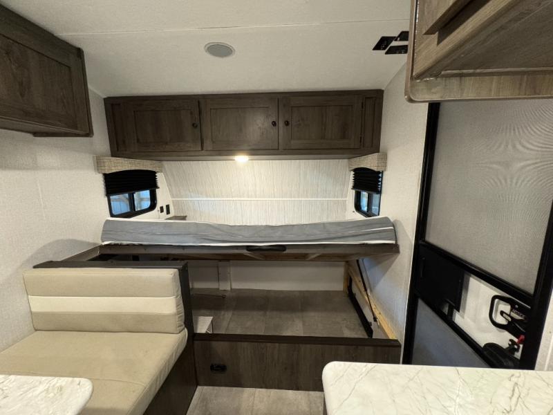 The booth-style dinette offers a cozy spot for family meals, card games, or planning your next day’s adventure. When it’s time to sleep, the dinette easily converts into an additional bed, making this space multifunctional and practical.