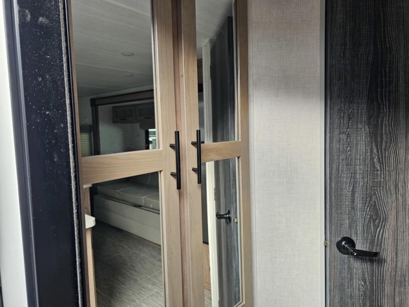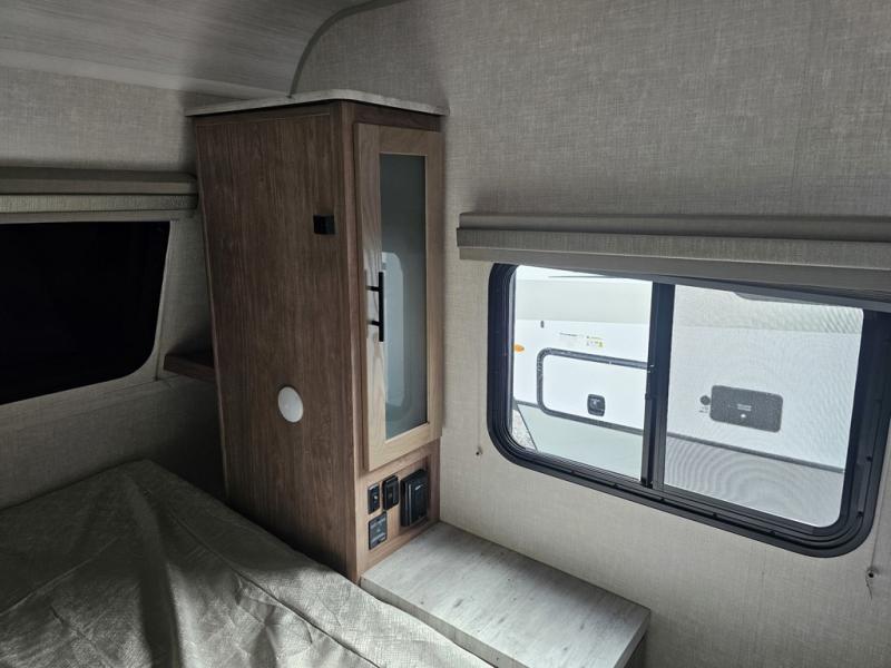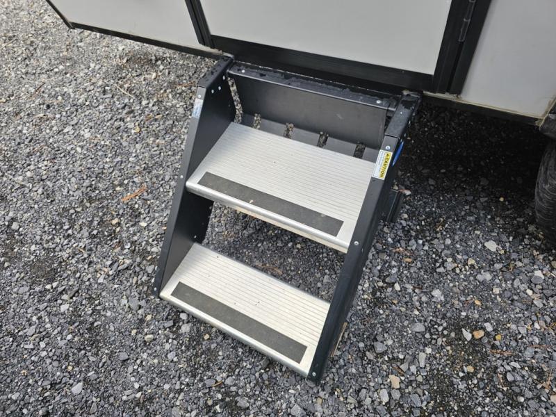 Make your camping dreams come true with this No Boundaries travel trailer! As you enter this unit, you'll notice an entryway closet that you can use to store your coats and scarves, and the full bathroom is also right in front of the entry door for easy access when you need it. The kitchen has great amenities, like a two-burner glass recessed cooktop, a refrigerator, and a sink, and there is a breakfast bar with two stools where you can sit down with a fresh plate of eggs each morning. When you fold away the Murphy bed in the morning, you'll have two sofas to rest on throughout the day, and you can use the JBL FLIP portable Bluetooth speaker to listen to some music while you enjoy the day.