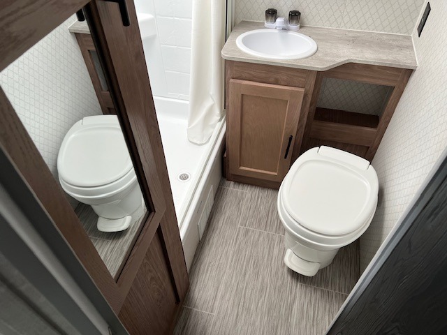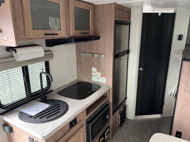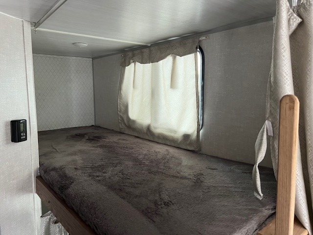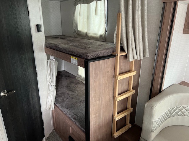 This No Boundaries travel trailer will make your life easier with its bunk beds, chaise lounge, and queen-size bed. Now you can bring along your favorite people without worrying where they will sleep at night. The single slide gives you more space for staying inside and spending time together, and there is an entertainment center that you can use while you're in there. This trailer also has great storage with the bathroom closet, kitchen refrigerator, overhead cabinets, and exterior pass-through storage. You'll also have a 14' power awning that will protect you while you're outside enjoying the weather.