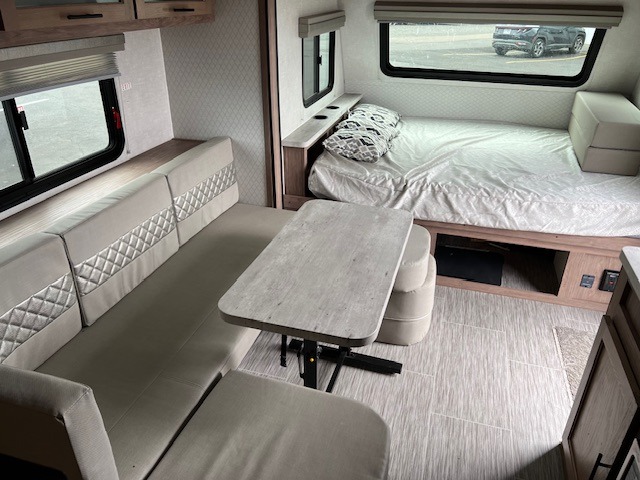 If you want to break free from the travel constraints of standard trailers, then you must choose the Forest River No Boundaries travel trailer or toy hauler because they are rugged and ready for adventure! These trailers offer you a Rhino Rack RVT track to bring along your kayaks or fishing equipment, high-performance vinyl furniture to relax on, a USB charging station to power your electronics, and a Cold Weather Package to keep you warm during the cold season. You'll also have satin matte-finish six-lug wheels wrapped in all-terrain tires for an exceptional ride.