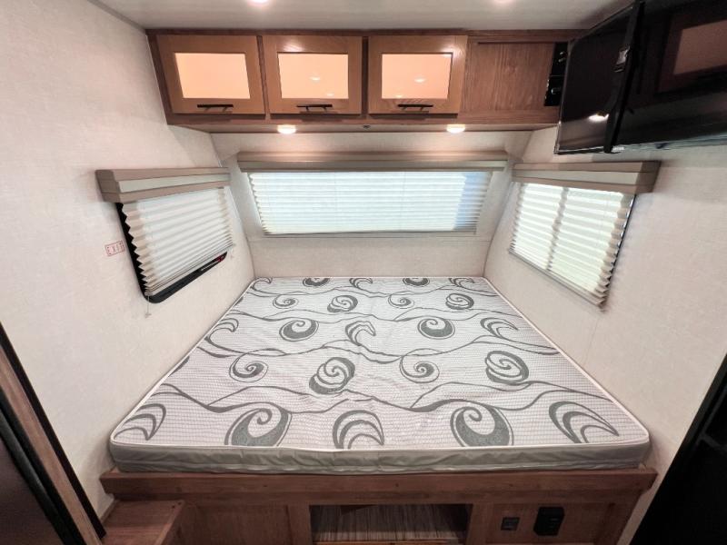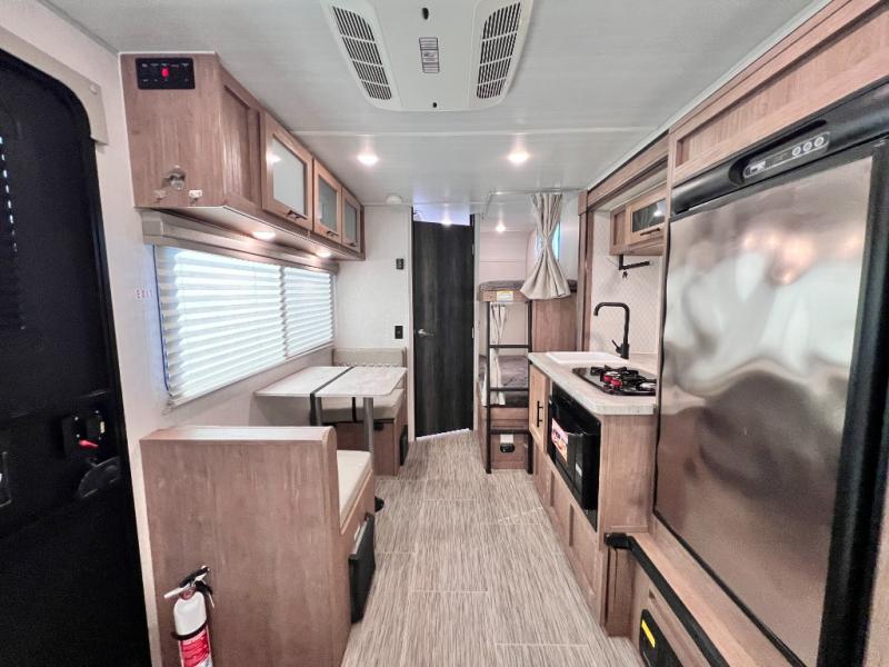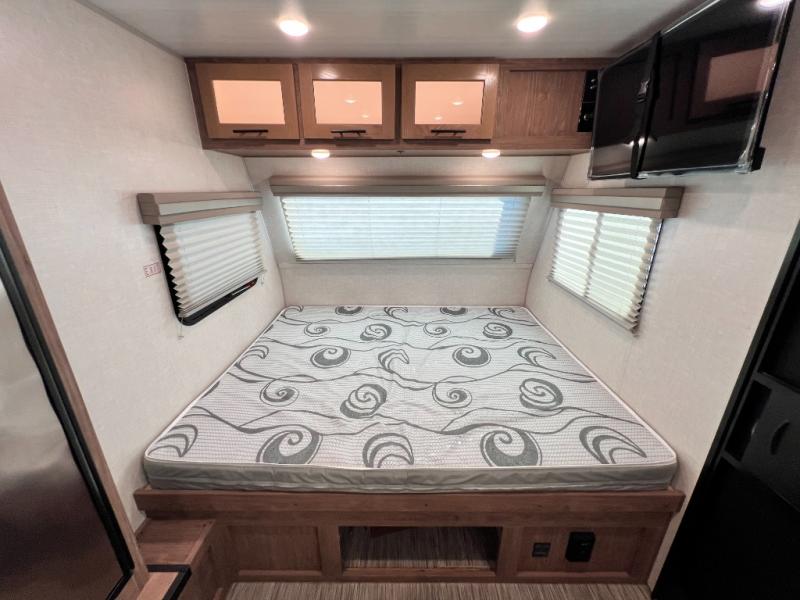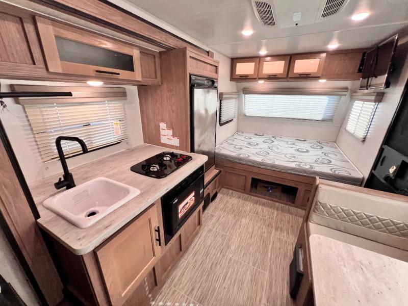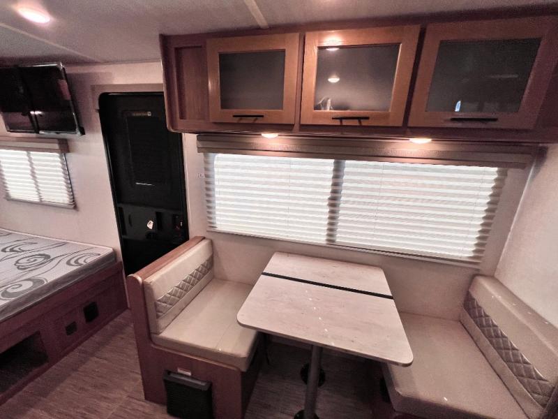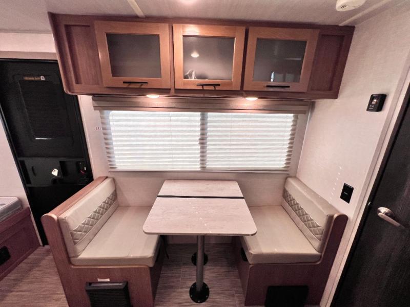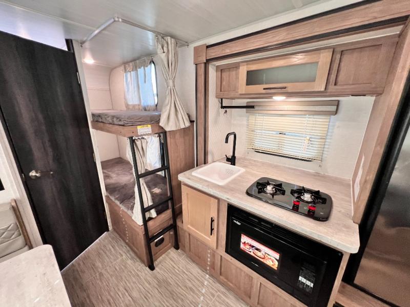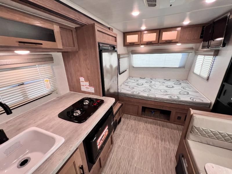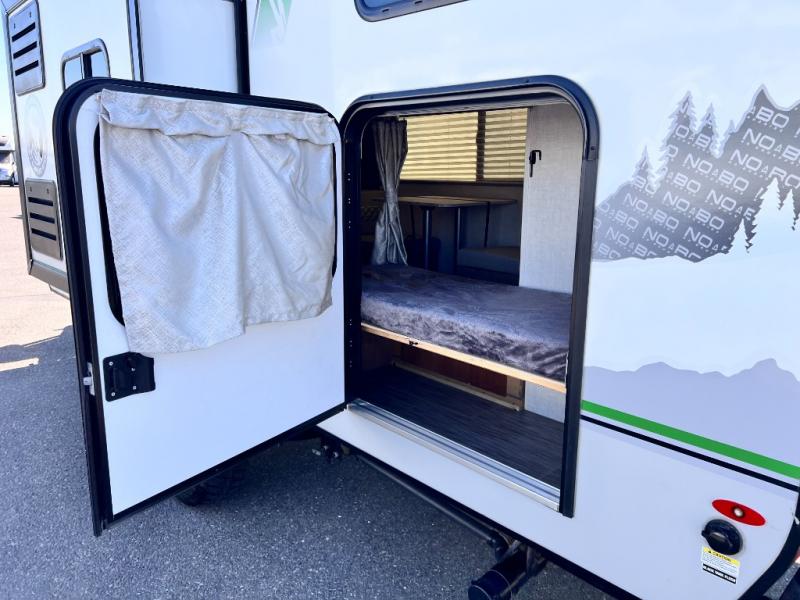 There won't be anything holding you back from a good time with this No Boundaries travel trailer! Whether it's a weekend away with the kids or a meaningful trip with your spouse, you'll have great comfort in this trailer with the RV queen bed up front and the bunk beds in the back. The bunks also have a flip-up adventure storage for extra gear, and you have more sleeping space once you fold the booth dinette into a bed. If you choose to spend your time outside, you'll love having an 11' awning to protect you, and there is a pass-through storage compartment to store your grilling sticks and fishing poles.