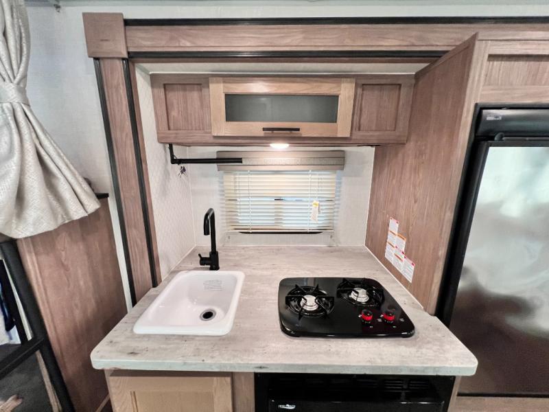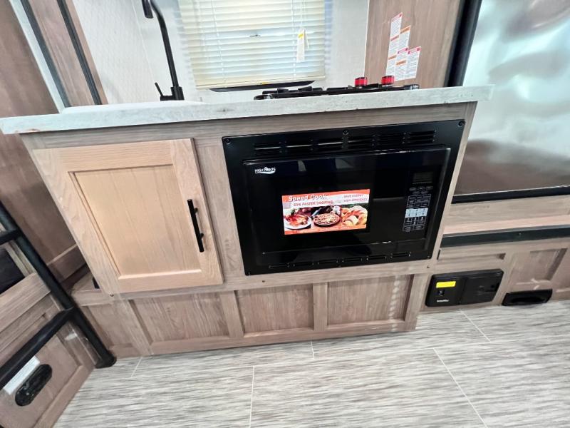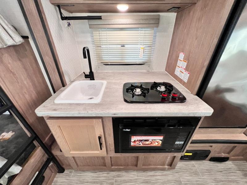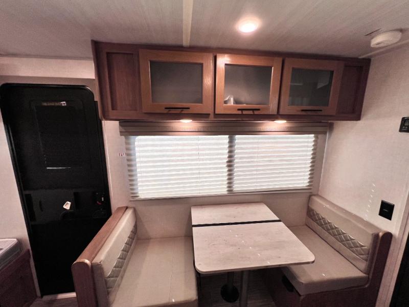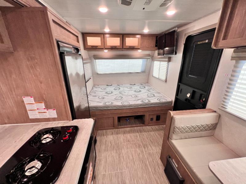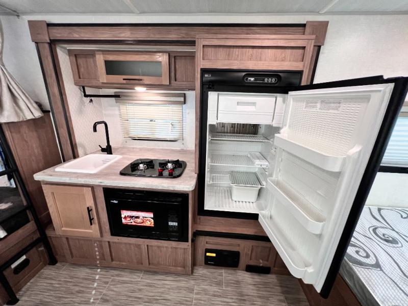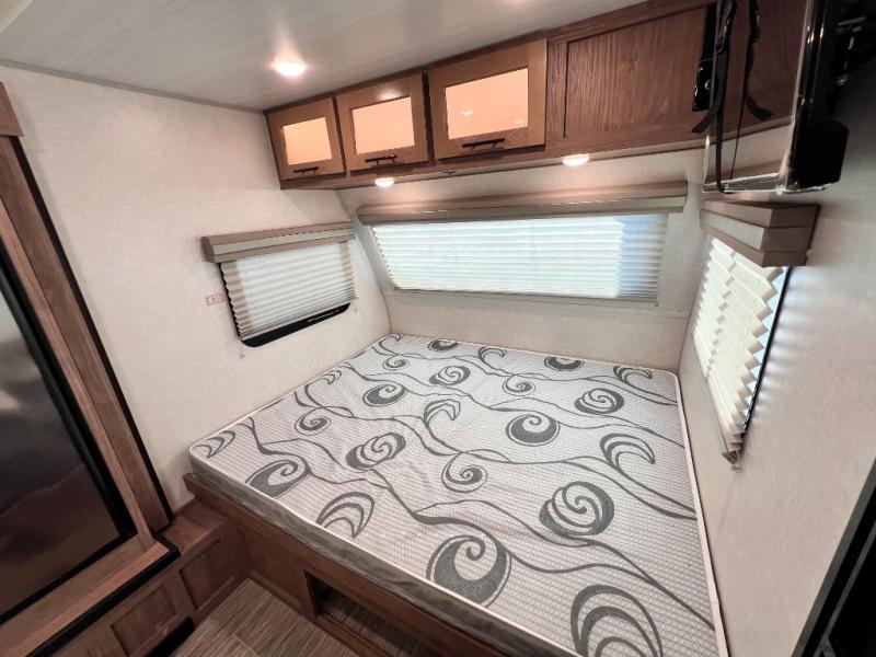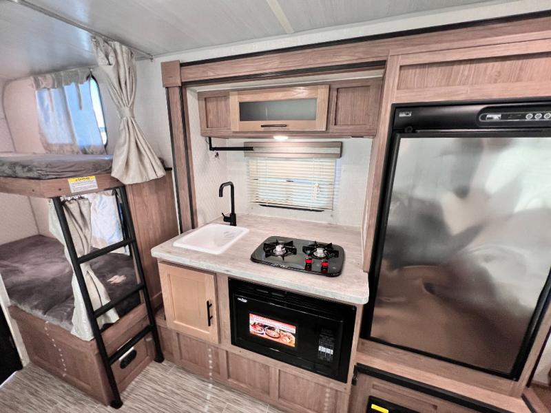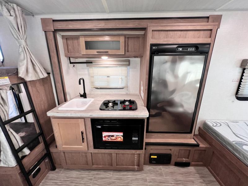 There won't be anything holding you back from a good time with this No Boundaries travel trailer! Whether it's a weekend away with the kids or a meaningful trip with your spouse, you'll have great comfort in this trailer with the RV queen bed up front and the bunk beds in the back. The bunks also have a flip-up adventure storage for extra gear, and you have more sleeping space once you fold the booth dinette into a bed. If you choose to spend your time outside, you'll love having an 11' awning to protect you, and there is a pass-through storage compartment to store your grilling sticks and fishing poles.