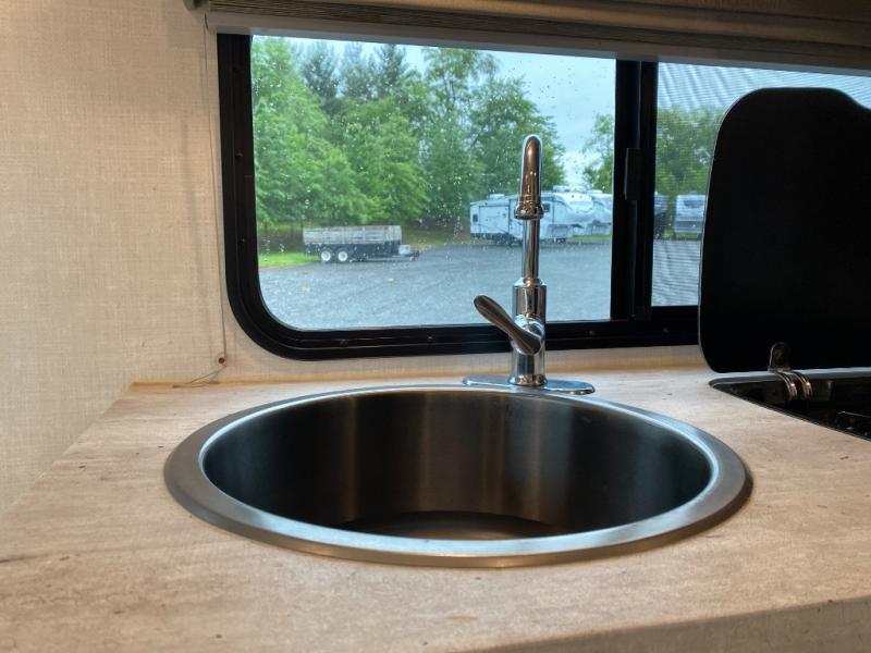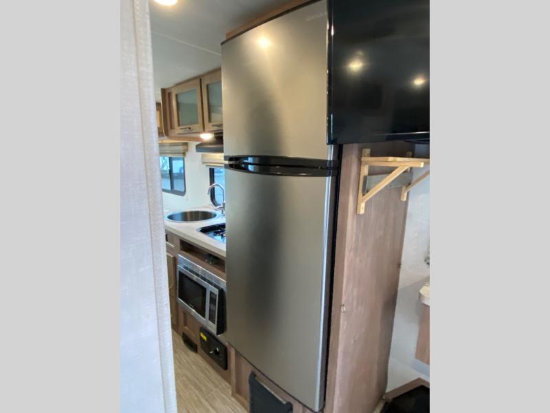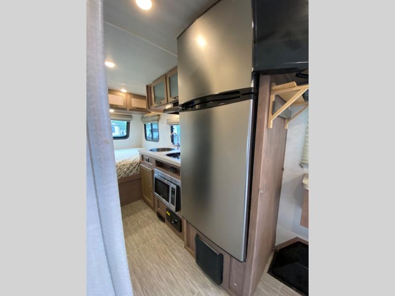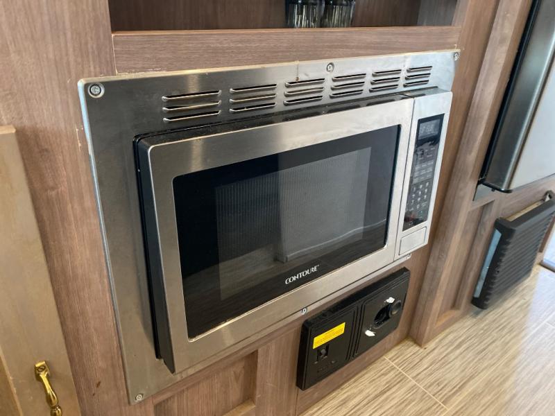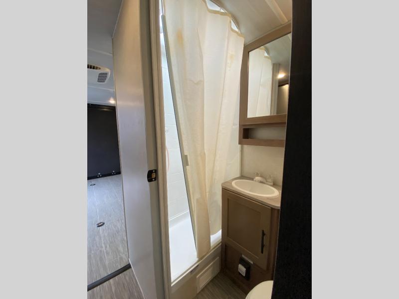 You'll be all set for your next adventure with this No Boundaries toy hauler! Not only do you have plenty of space to store your four-wheelers and dirt bikes in the 10' 7" garage, but you also have space to sleep on a queen-size bed, space to clean up with the full bathroom, space to create meals with the kitchen amenities, and space to relax with the flip-up sofa. If you want more space to spread out while you relax, just head outside to your camp chairs and pull out the 16' awning. There is also storage space on this trailer with the pantry, refrigerator, overhead cabinets, and exterior pass-through storage.
