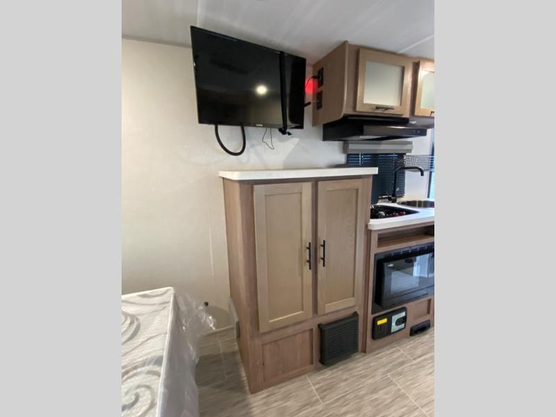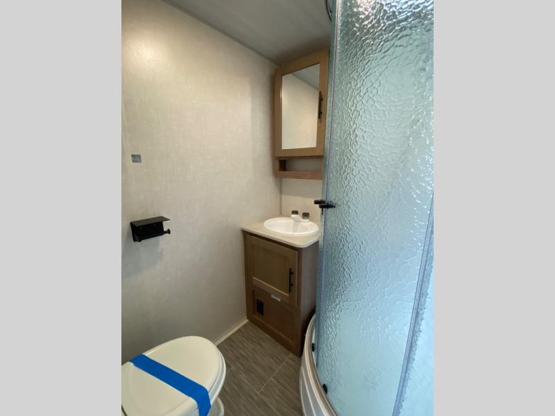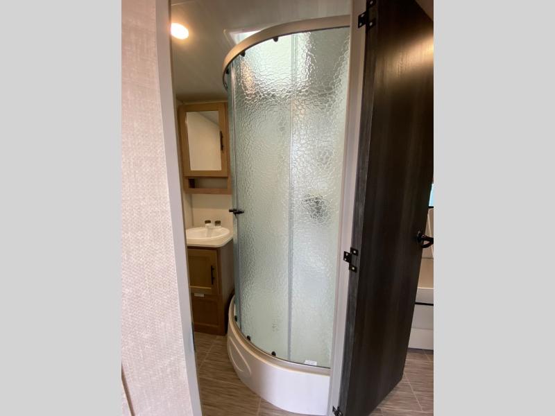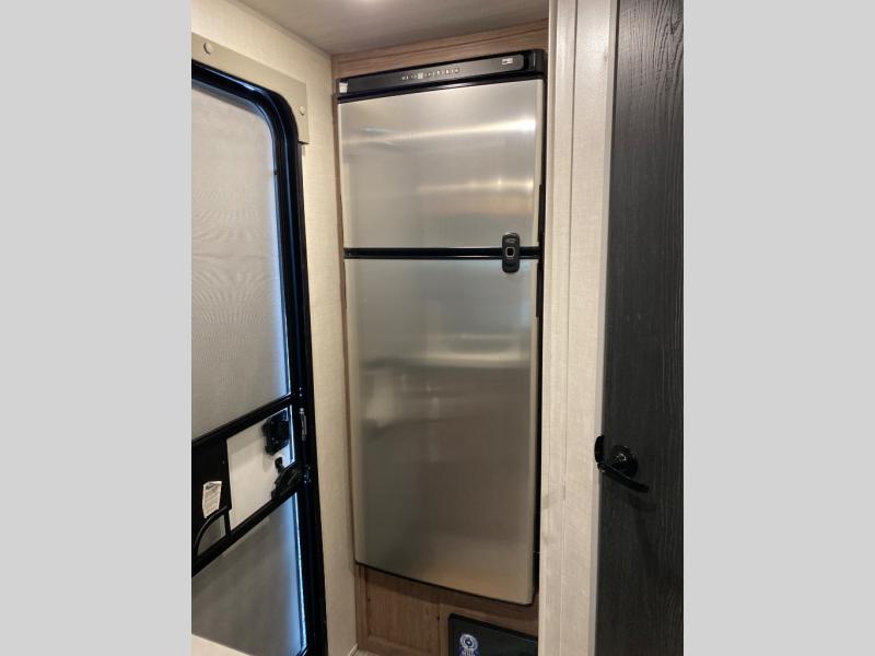 Turn your safe and boring trips into exciting adventures with this rugged No Boundaries travel trailer! You will be free to go to untraveled terrain, and you'll be cared for while you're there with great kitchen amenities, a full bathroom with radius shower, a queen-size bed for nighttime comfort, and a chaise lounge for relaxation during the day. There is even a single slide to add a bit more space to this trailer. You can make this trailer even more fantastic by adding the optional solar package, 12V LED TV, or convection microwave.