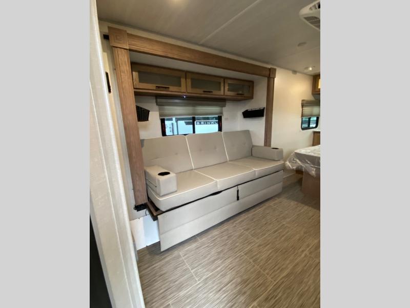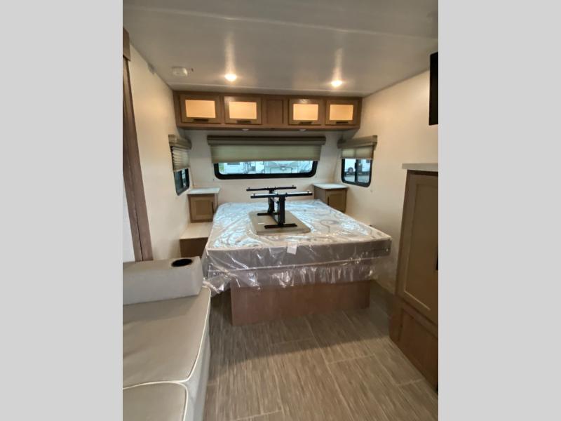 If you want to break free from the travel constraints of standard trailers, then you must choose the Forest River No Boundaries travel trailer or toy hauler because they are rugged and ready for adventure! These trailers offer you a Rhino Rack RVT track to bring along your kayaks or fishing equipment, high-performance vinyl furniture to relax on, a USB charging station to power your electronics, and a Cold Weather Package to keep you warm during the cold season. You'll also have satin matte-finish six-lug wheels wrapped in all-terrain tires for an exceptional ride.