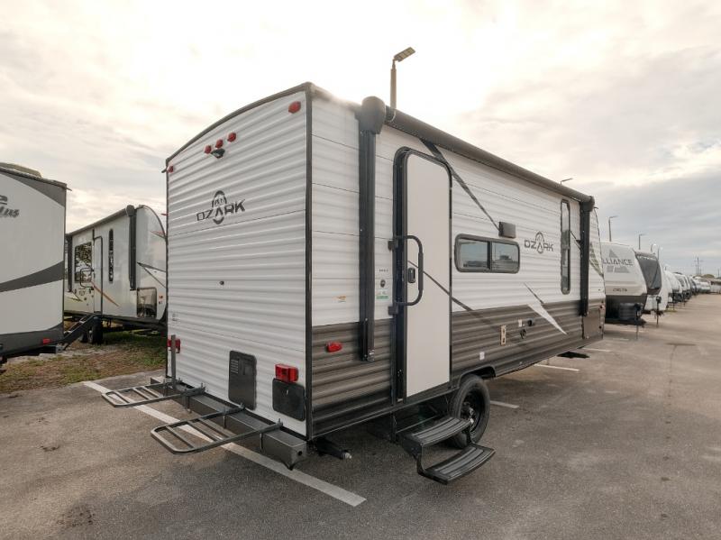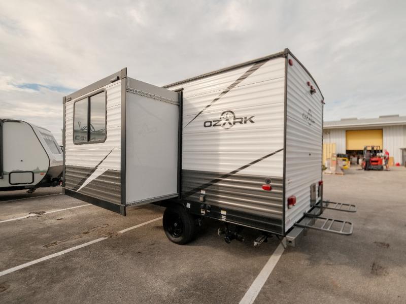 Whatever journey you choose to take, the Forest River Ozark travel trailer or toy hauler will be well prepared to make that journey the best it can be! You'll have a full-length power awning with adjustable legs and LED lights to enhance your evenings spent outside. The friction-hinge entry door won't slam against the side of your trailer as soon as you open it, and the double step plus XL folding grab assist handle will create an easy way to enter your trailer. The class-leading window package will make sure that all of your scenic views are easily seen from the inside of your trailer, and the durable one-piece linoleum flooring ensures that cleaning won't be burdensome.