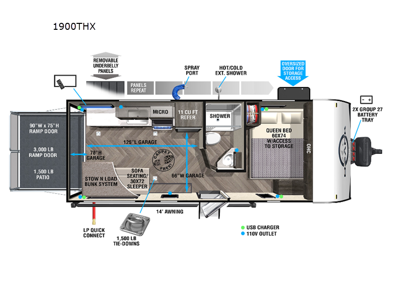 Forest River Ozark Ascent toy hauler 1900THX highlights:
