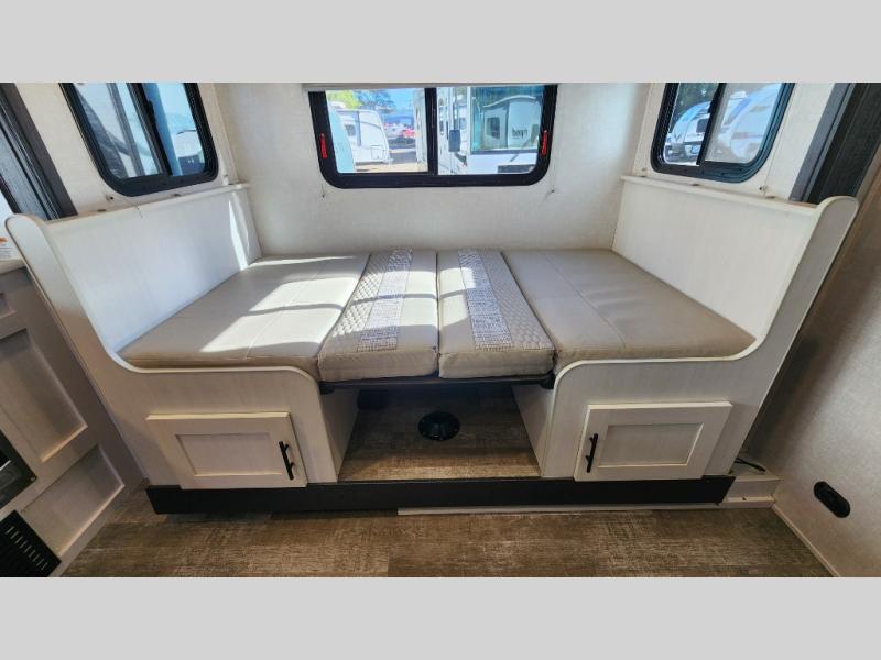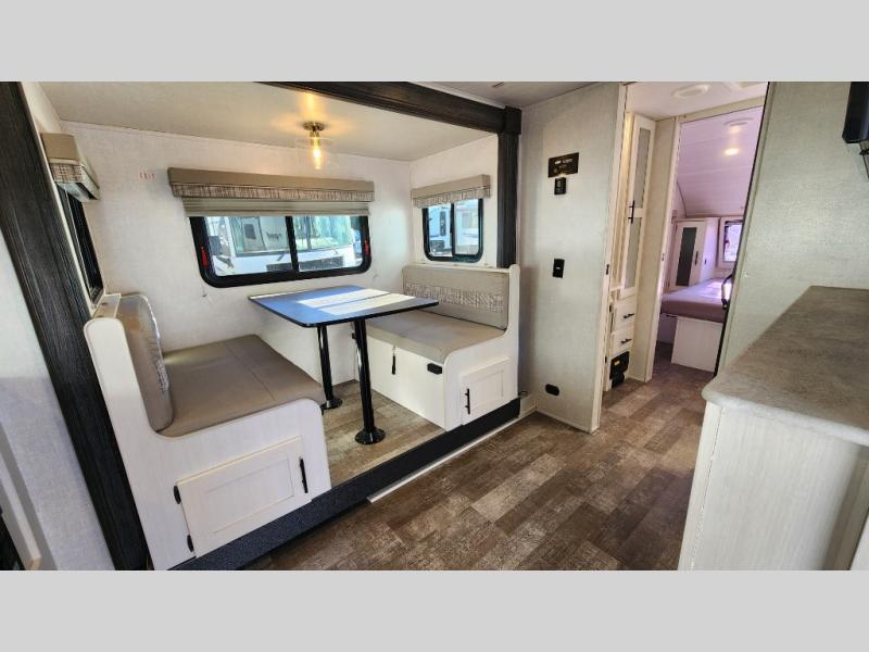 “Your Budget Will Thank You. So Will Your Weekend Plans.” Options Featured in This Unit Include a Booth Dinette; Rear Kitchen; RV Queen-Size Bed; Outside Kitchen; Walk-Through Bath!
