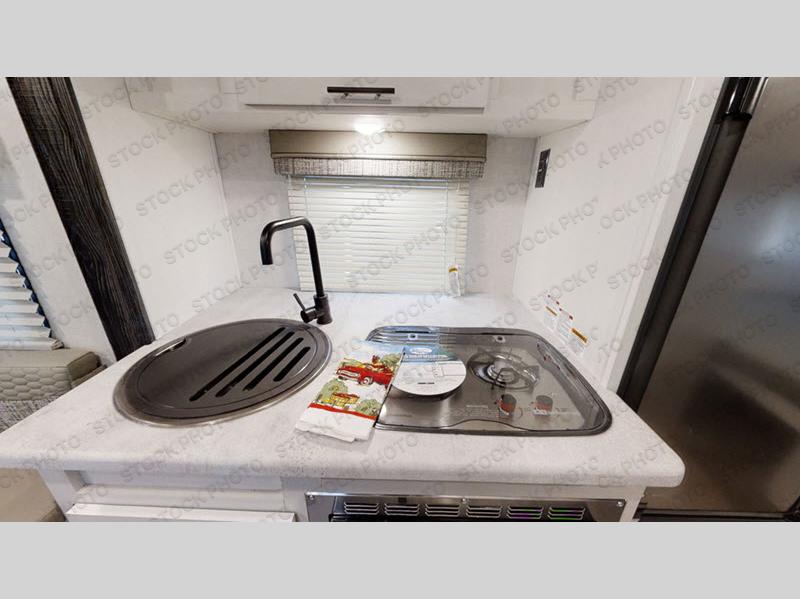 For the couple who is ready to camp anytime and anywhere, you will love how easy it is to travel with this R-Pod travel trailer. You can easily set up the single slide to give you more room to move about. Within this slide, you will find the kitchen amenities, which include a two-burner cooktop, convection microwave and a refrigerator. You can enjoy your meals at the U-shaped dinette, and this furniture can double as a sleeping space, if needed. Along the front is an RV queen bed where you can rest up for another day of fun and adventure. With all of the exterior storage, you can bring along all of your necessary camping items and more!