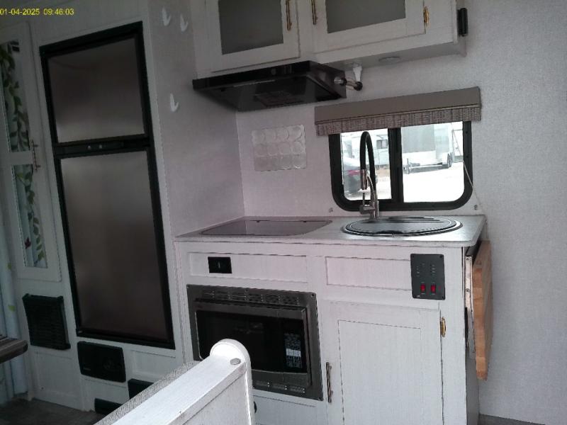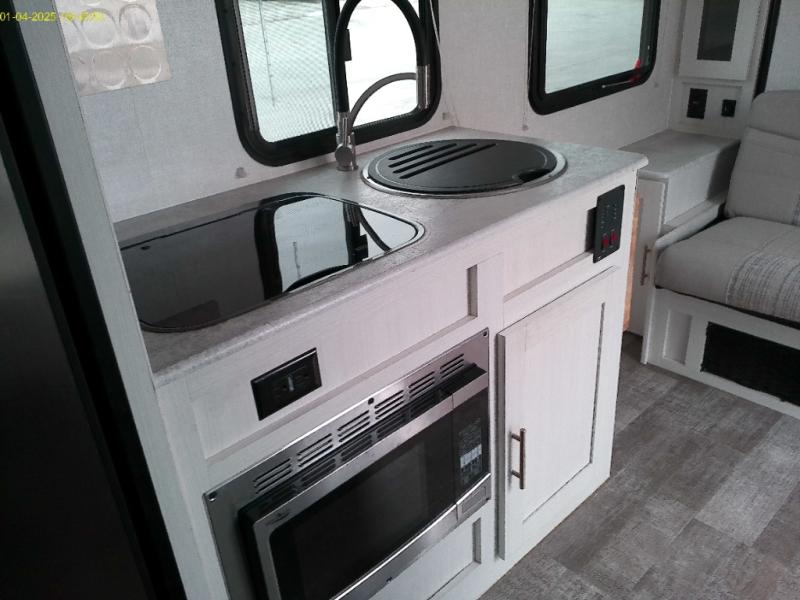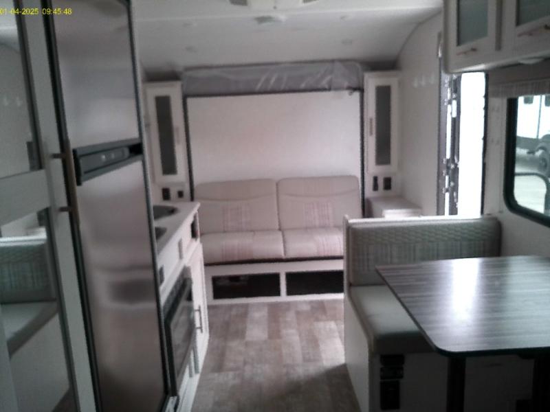 You're going to love all of the conveniences and versatility of this R-Pod travel trailer! The front Murphy bed folds away to reveal the sofa which gives you a comfortable place to sit during the day and to sleep at night too. The rear full bath features everything you will need to get squeaky clean each morning as well as a large wardrobe for you to store your linens. After you have whipped up your best meal with the two-burner cooktop, you can head to the 30" x 75" booth dinette and enjoy eating it there comfortably. There is plenty of storage space inside, but if you need more space, then you can use the exterior pass-through storage!