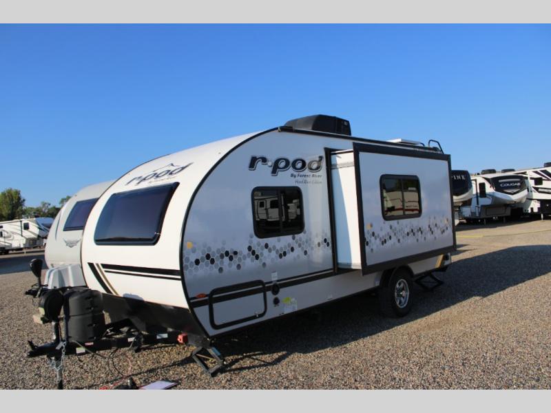 The Forest River R-Pod travel trailer is an excellent choice for lightweight towing and accommodating amenities! There are some enticing inclusions for the R-Pod, like the Azdel composite panels that will completely withstand water damage and the central vacuum system that will make it easy to clean up messes. The R-Pod has the largest refrigerator in its class, and there is also a black glass entrance door that enhances the sleek look of the stylish exterior. The R-Pod has been prepped for a solar panel and a back-up camera, and it also comes with an independent suspension torsion axle for a smooth ride to the campsite.