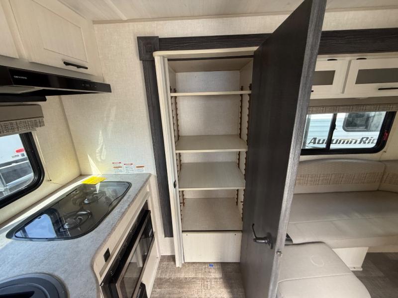 You are going to love waking up every camping weekend in this R-Pod travel trailer which features plenty of space and loads of storage for all of your things. The rear kitchen is unique and provides a large window above the cooktop and sink so that you can feel like you are cooking right outdoors even on a day when the weather isn't perfect. The U-shaped dinette and pantry within the slide out provides dining and sleeping space, dry good storage, as well as more interior floor space. The front RV queen bed will allow you to wake refreshed for each new day of adventure with extra walking around space, and you will appreciate the windows on each side for cross ventilation, as well as a great view of your surroundings.