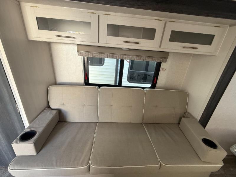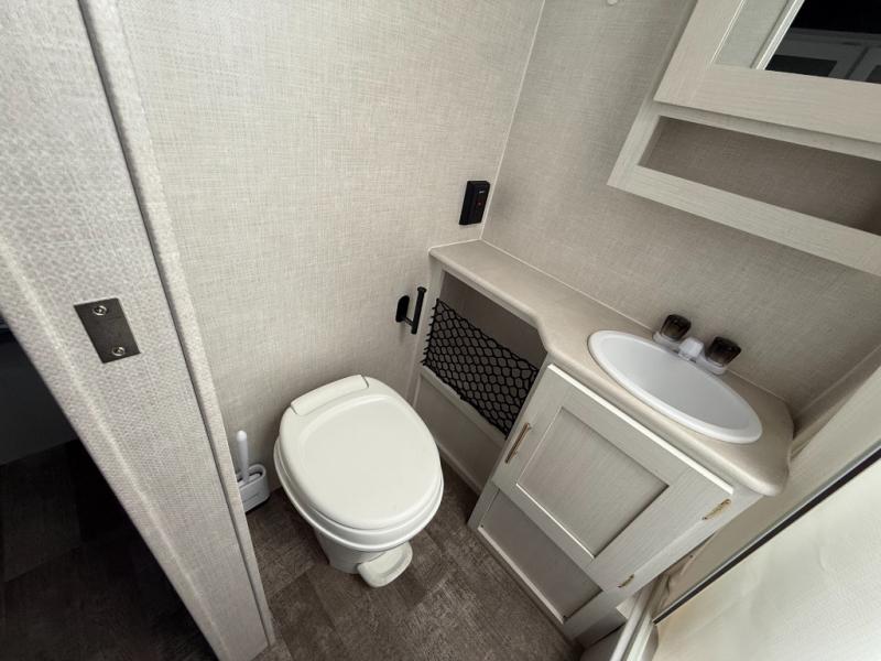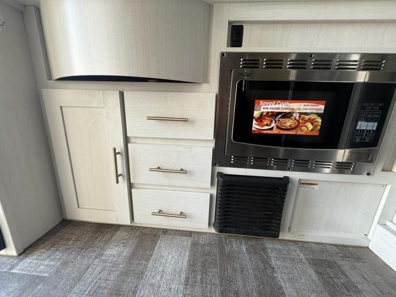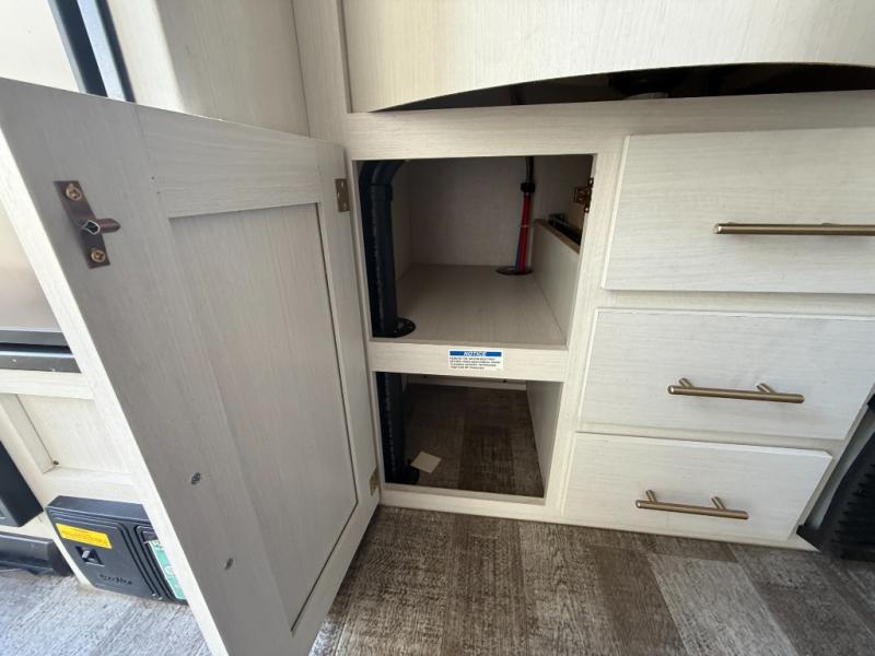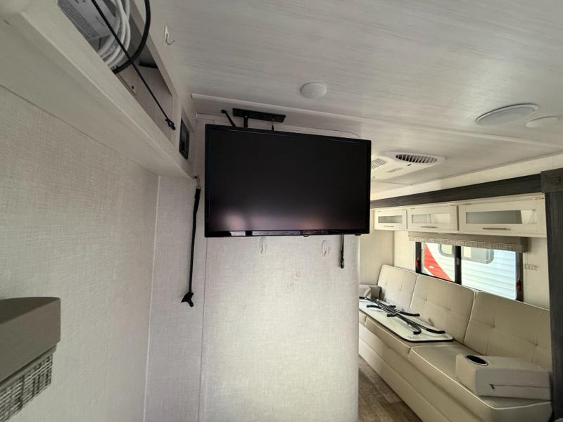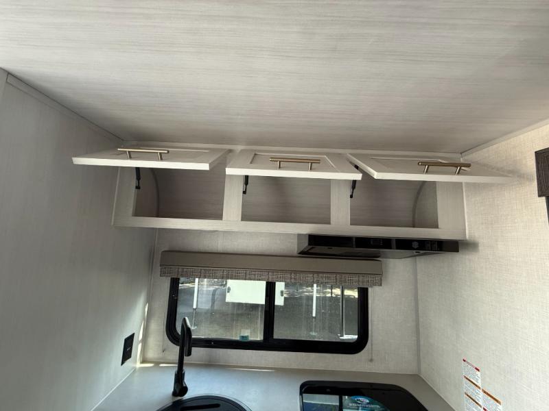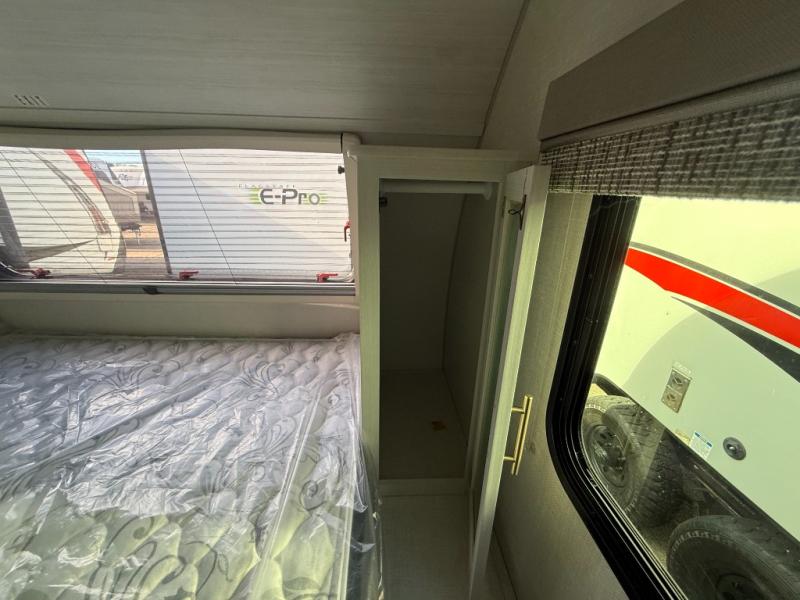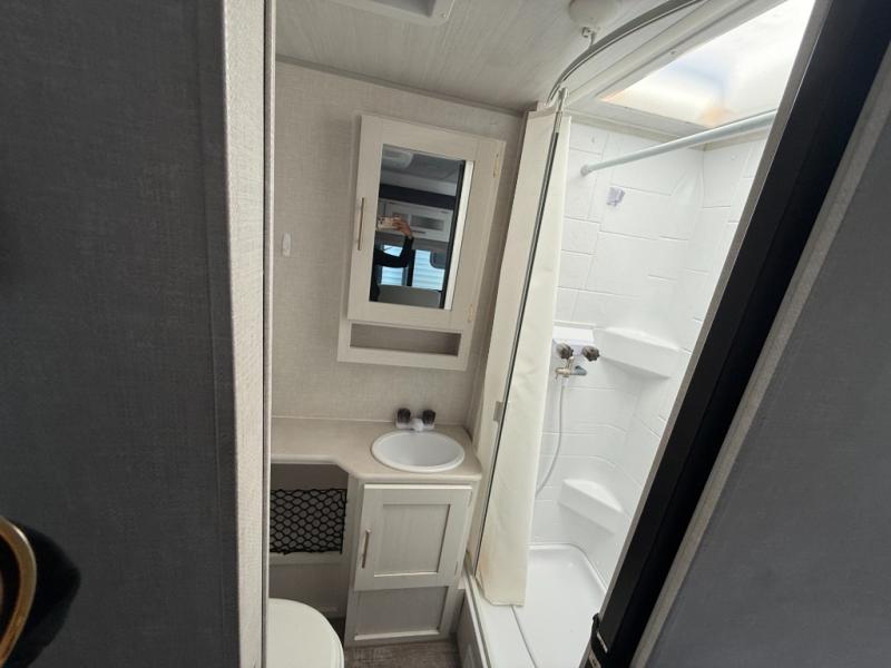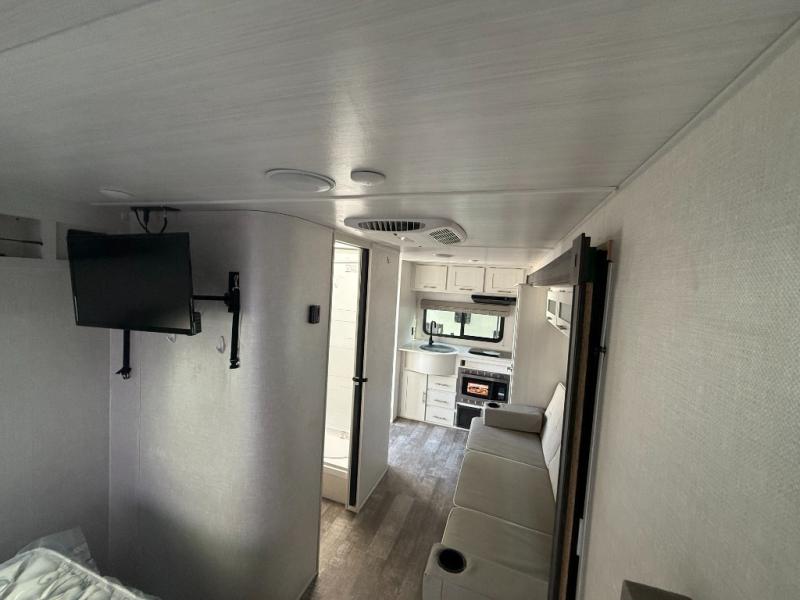 This is the perfect travel trailer for a couple or a small family, so pack your bags and get ready for an adventure in this R-Pod! After you've set up camp and had a look around the campgrounds, you can prepare lunch on the two-burner cooktop in the rear kitchen. There is a convenient three-way refrigerator and a pantry to store your favorite snacks and perishables, plus overhead compartments for your belongings. This model also includes a full bath so that you don't have to worry about using the camp's facilities, and the exterior pass-through storage allows you to bring along the fishing poles!