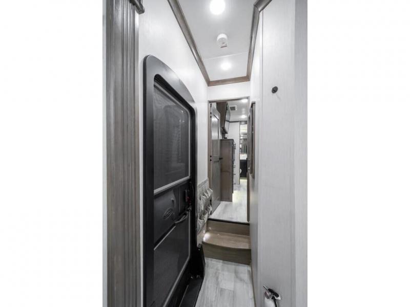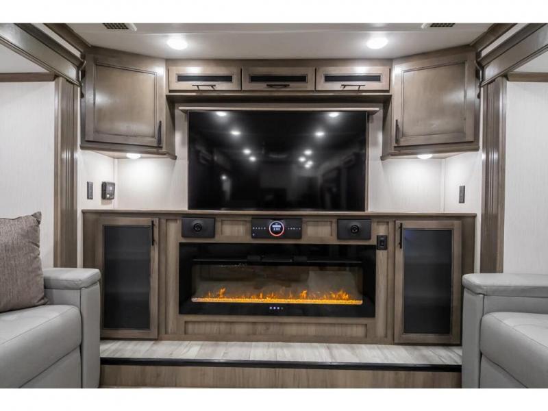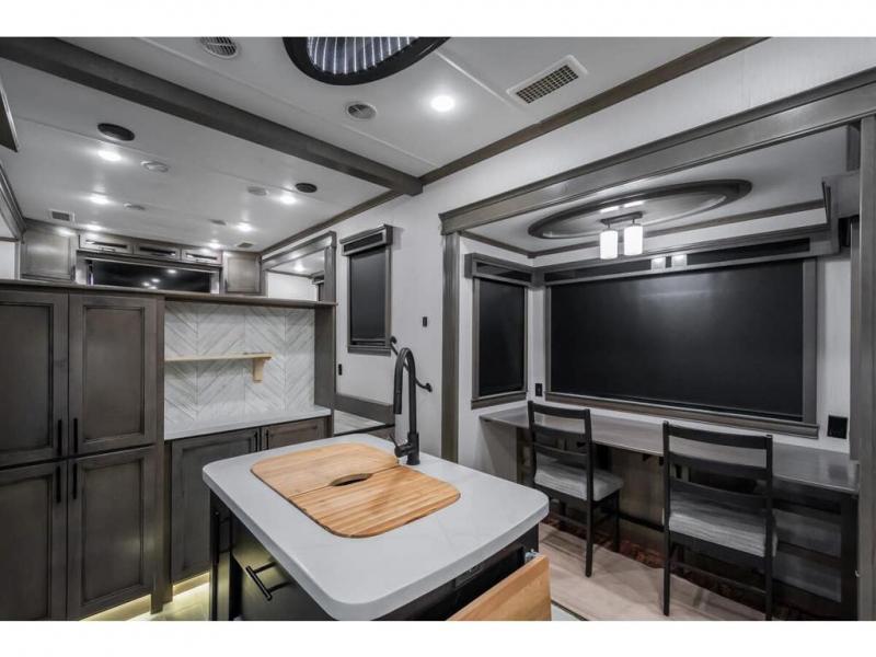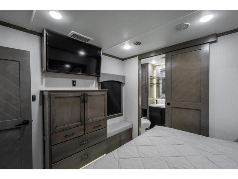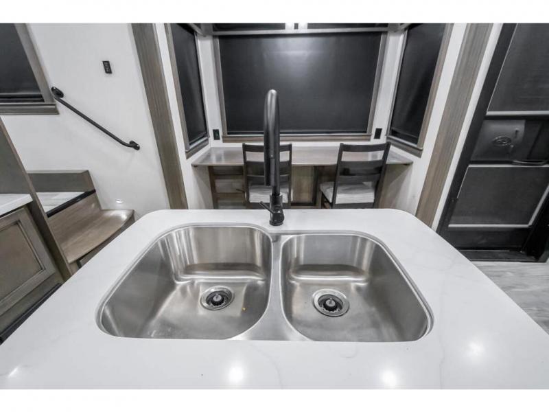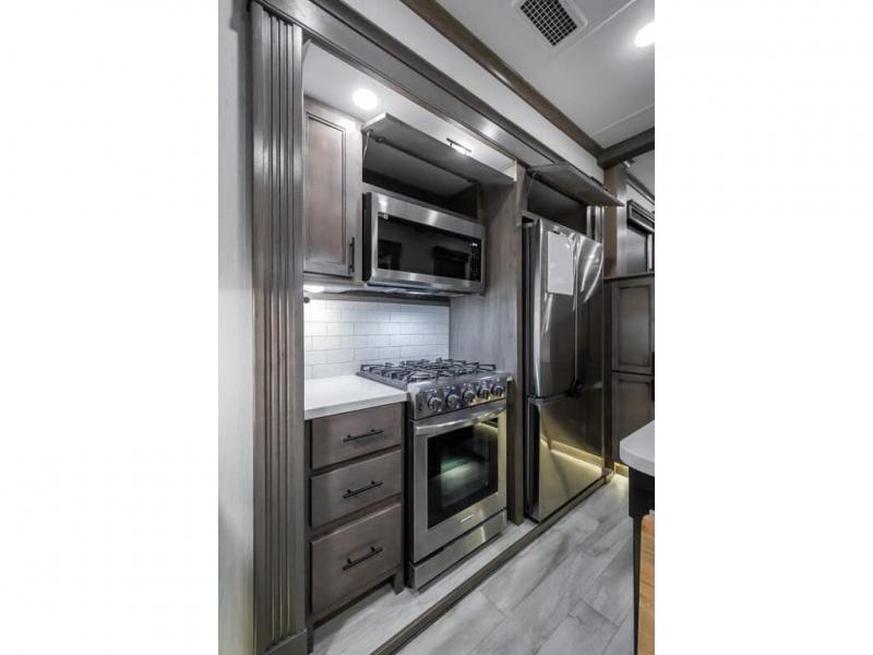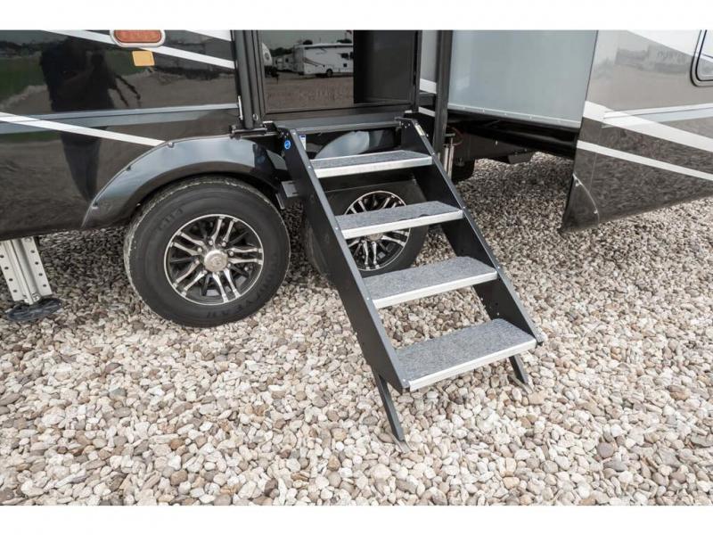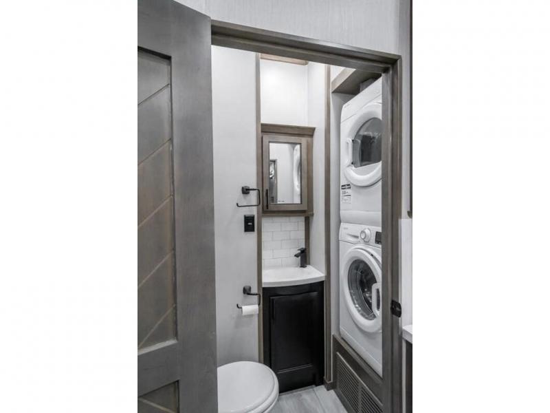 The Forest River RiverStone fifth wheels and toy haulers are luxurious units that have it all! You'll find an automatic six-point hydraulic level-up system to keep your unit in place, and there is preparation for a four-camera observation system. The King Wi-Fi Max router and omni-directional Wi-Fi antenna/extender will help you stay connected to the outside world, and you'll never have to overpack again since the Splendid “Astral” stackable washer and dryer will let you clean the small amount of clothes you've brought with you. Another high luxury is the Fischer Paykal dishwasher which will allow you to spend more time enjoying your camp life and less time cleaning up. Each unit is built with an LCI Road Armour suspension system, dual-pane frameless windows, a full docking station, a 190W solar panel, and a Firefly integrated touch control system.