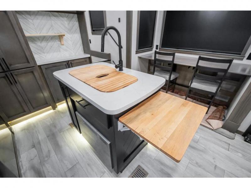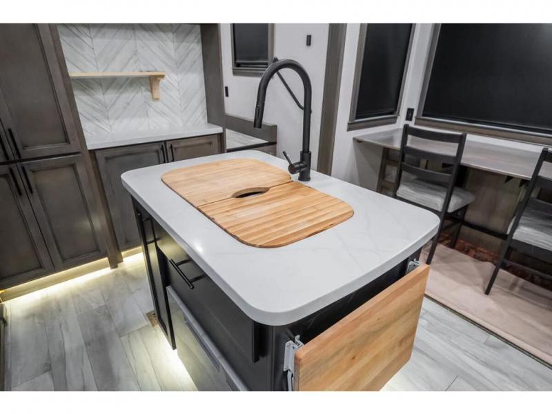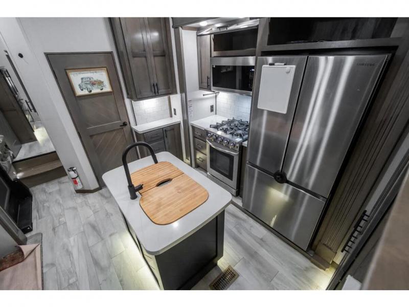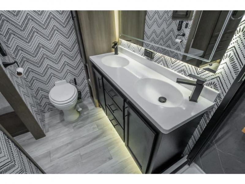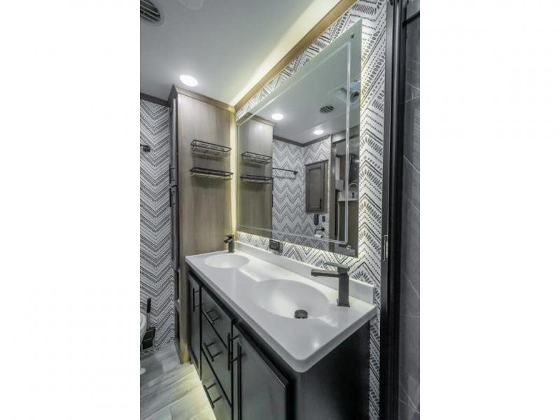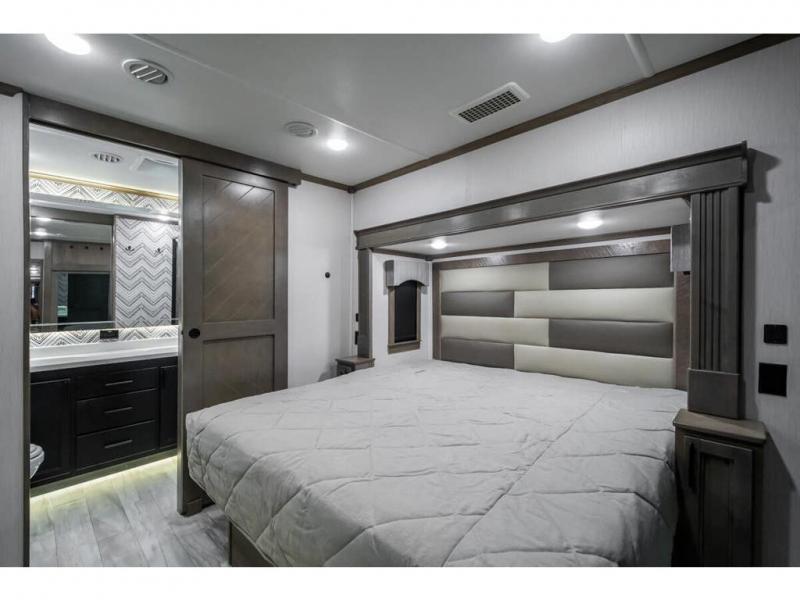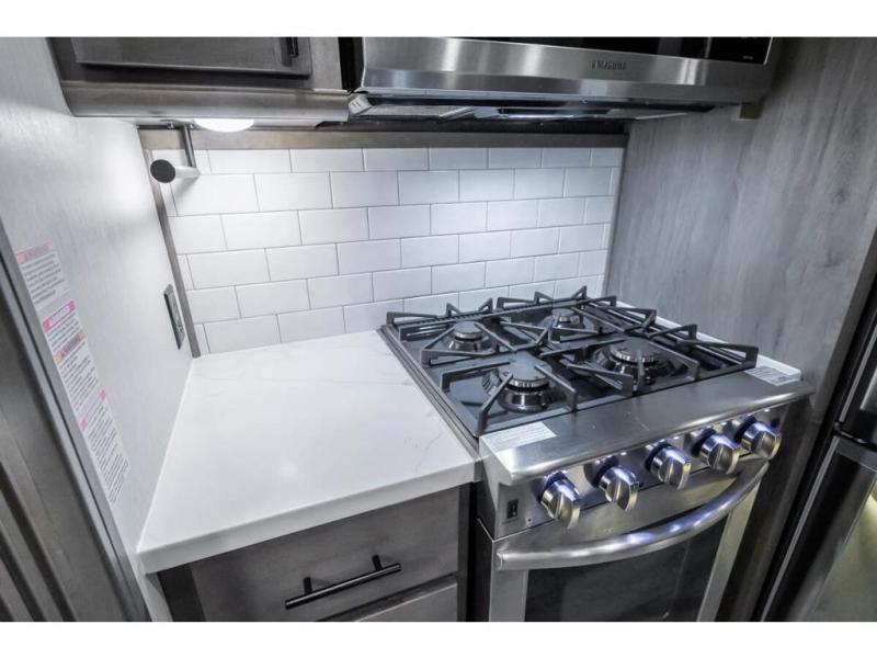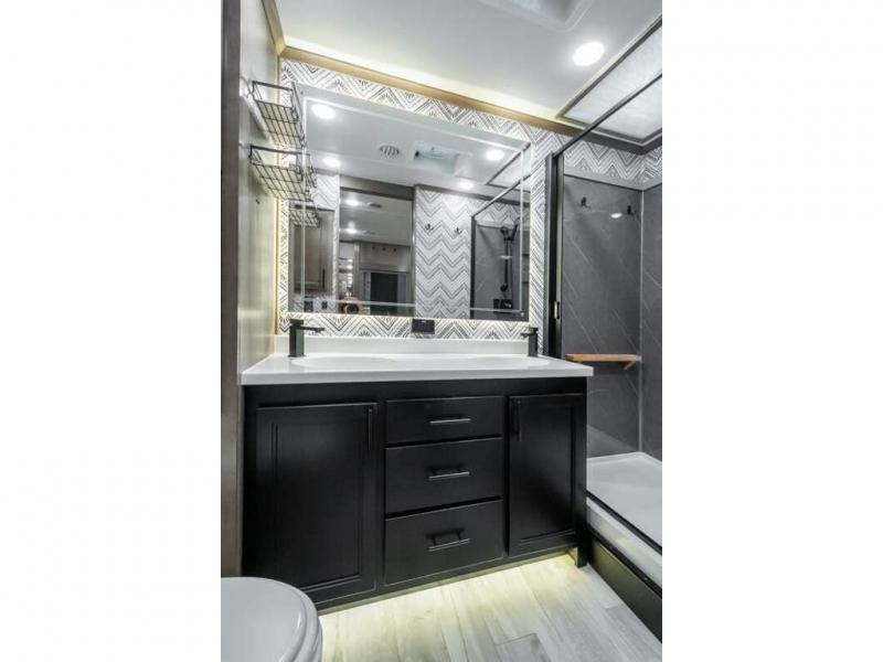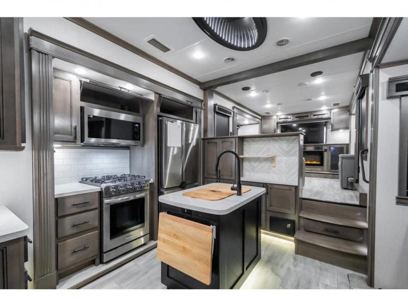 The Forest River RiverStone fifth wheels and toy haulers are luxurious units that have it all! You'll find an automatic six-point hydraulic level-up system to keep your unit in place, and there is preparation for a four-camera observation system. The King Wi-Fi Max router and omni-directional Wi-Fi antenna/extender will help you stay connected to the outside world, and you'll never have to overpack again since the Splendid “Astral” stackable washer and dryer will let you clean the small amount of clothes you've brought with you. Another high luxury is the Fischer Paykal dishwasher which will allow you to spend more time enjoying your camp life and less time cleaning up. Each unit is built with an LCI Road Armour suspension system, dual-pane frameless windows, a full docking station, a 190W solar panel, and a Firefly integrated touch control system.