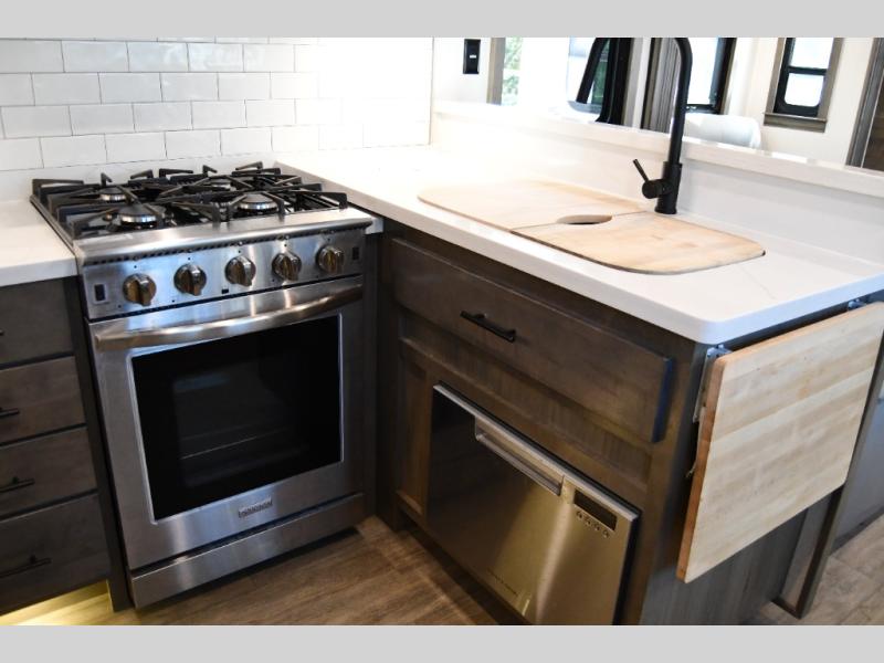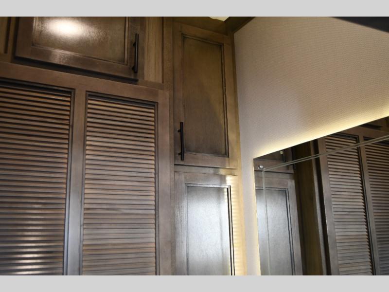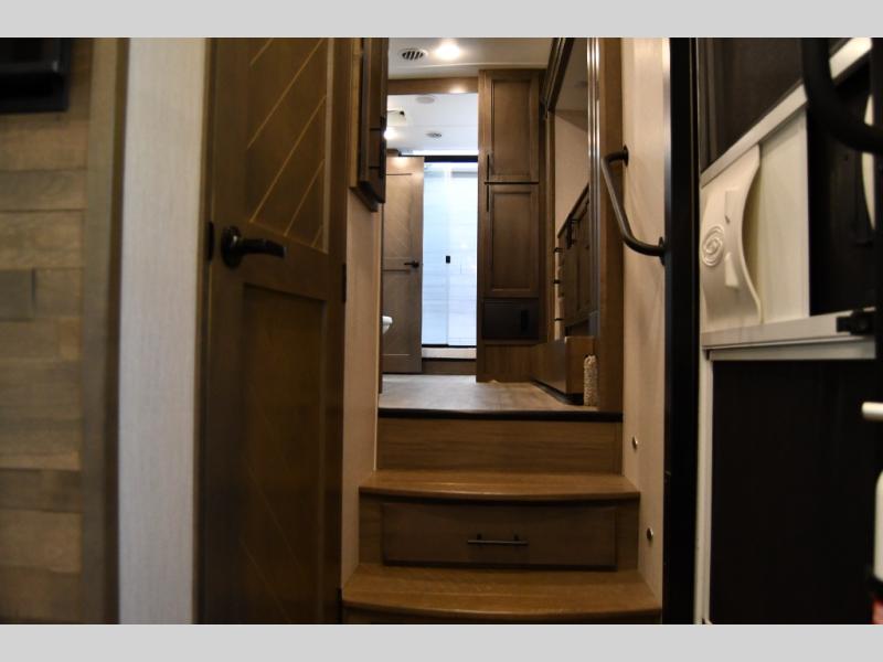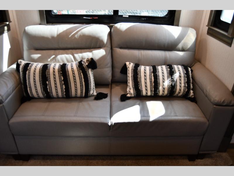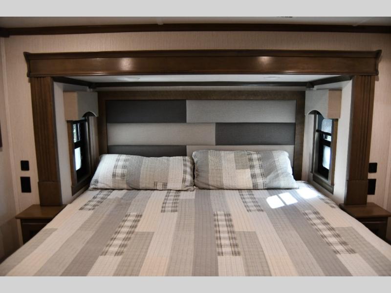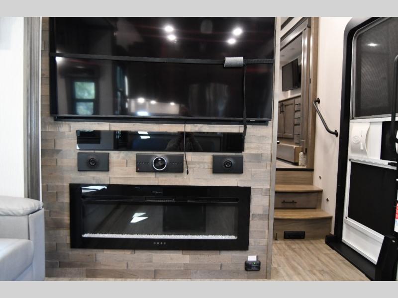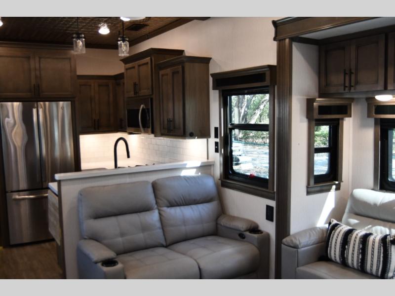The 2022 RiverStone stands out with its spacious, residential-style interior, featuring high-end finishes, solid surface countertops, and thoughtfully designed living spaces. The open floor plan creates a true home-like atmosphere, perfect for long-term RV living or seasonal travel.