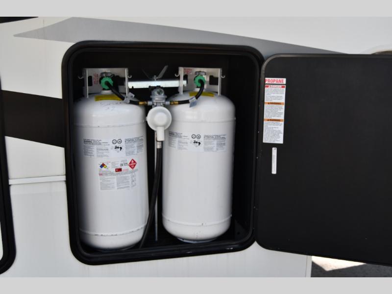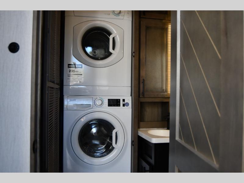 The Forest River RiverStone fifth wheels and toy haulers are luxurious units that have it all! You'll find an automatic six-point hydraulic level-up system to keep your unit in place, and there is preparation for a four-camera observation system. The King Wi-Fi Max router and omni-directional Wi-Fi antenna/extender will help you stay connected to the outside world, and you'll never have to overpack again since the Splendid “Astral” stackable washer and dryer will let you clean the small amount of clothes you've brought with you. Another high luxury is the Fischer Paykal dishwasher which will allow you to spend more time enjoying your camp life and less time cleaning up. Each unit is built with an LCI Road Armour suspension system, dual-pane frameless windows, a full docking station, a 190W solar panel, and a Firefly integrated touch control system.