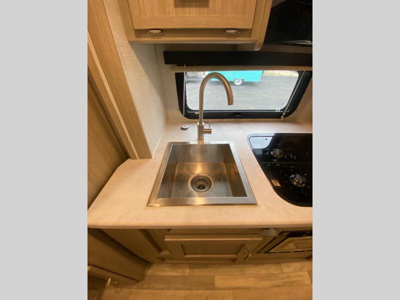 This travel trailer with bunk beds will be perfect for family camping or weekend trips to the lake with friends. There is a U-shaped dinette up front that can convert to a 54" x 82" bed and plenty of overhead compartments for your belongings. The chef of your group can prepare meals on the three burner cooktop within the slide out, and there is a wardrobe by the bunks for extra storage. This model also includes a full bath with a foot flush toilet, a Shower Miser Water Saver, and a Maxxair ventilation fan to keep everything fresh.