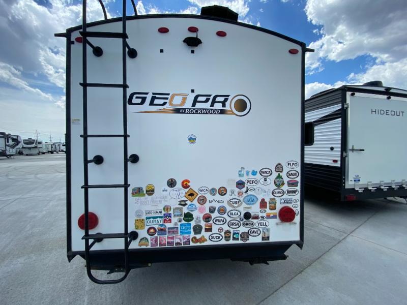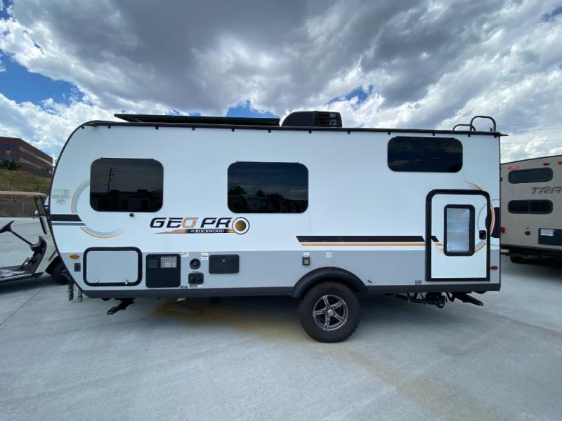 The Rockwood GEO Pro travel trailers and toy hauler by Forest River are ready for all your adventures. The interior and exterior Azdel construction, along with the vacuum laminated roof and walls provide a durable trailer, and the Dexter torsion axles with aluminum wheels make towing easier than ever. There are many convenient amenities, like the 13,500 BTU A/C, the Bluetooth system control panel, and the all-in-one Teton HD TV/WiFi/FM antenna with LTE prep. Each model includes frameless windows, fabric valances and roller shades, and a modern interior that will make you feel right at home. Everything you're looking for in your next RV is in a Rockwood GEO pro by Forest River!