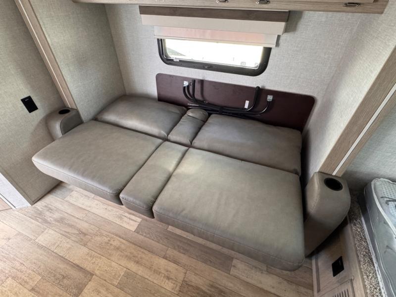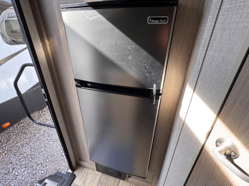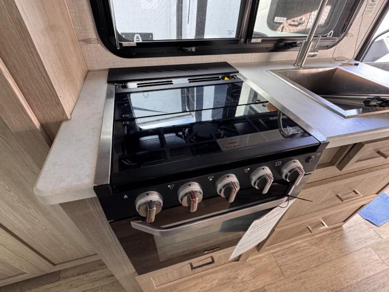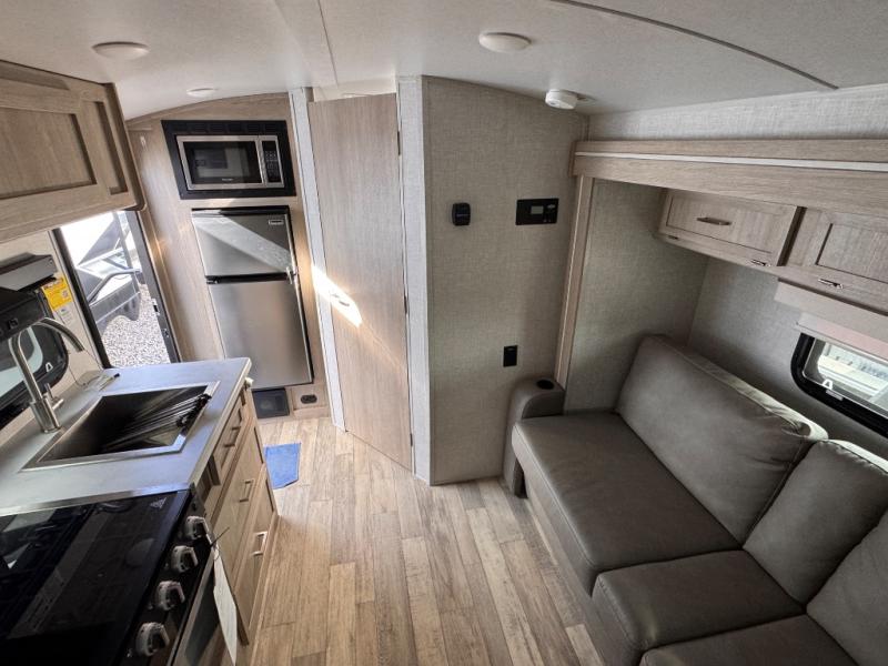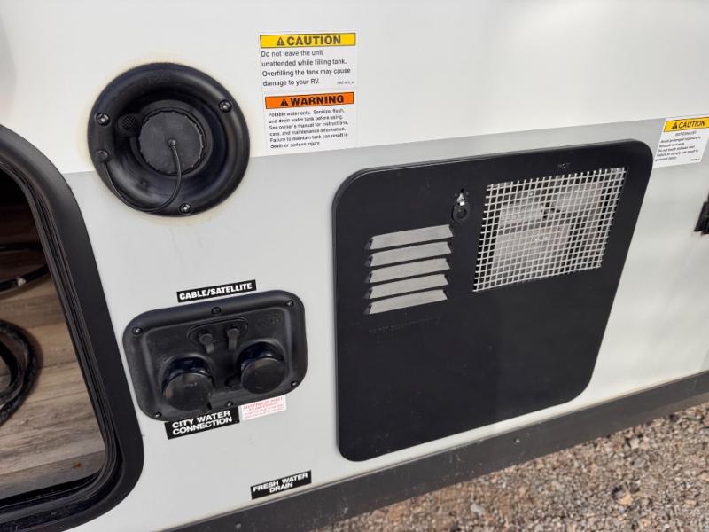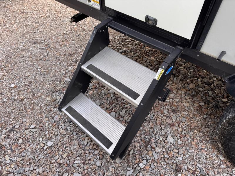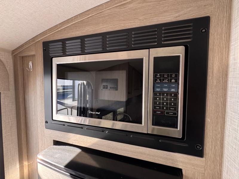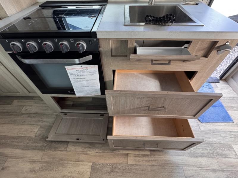 This is the perfect couple's trailer, so sneak away for a weekend in the woods. There is a 72" sofa slide out with a table that will be perfect for meals times, relaxing, or additional sleeping space if you have a guest or two. This model includes a 12V TV to keep you busy on those rainy days, and the queen bed will provide a great night's rest. This model also includes an outside griddle and an 11' power awning so you can enjoy those nice days outdoors!