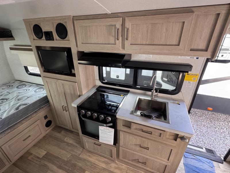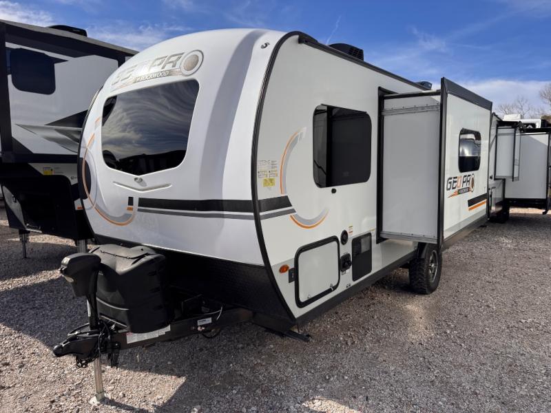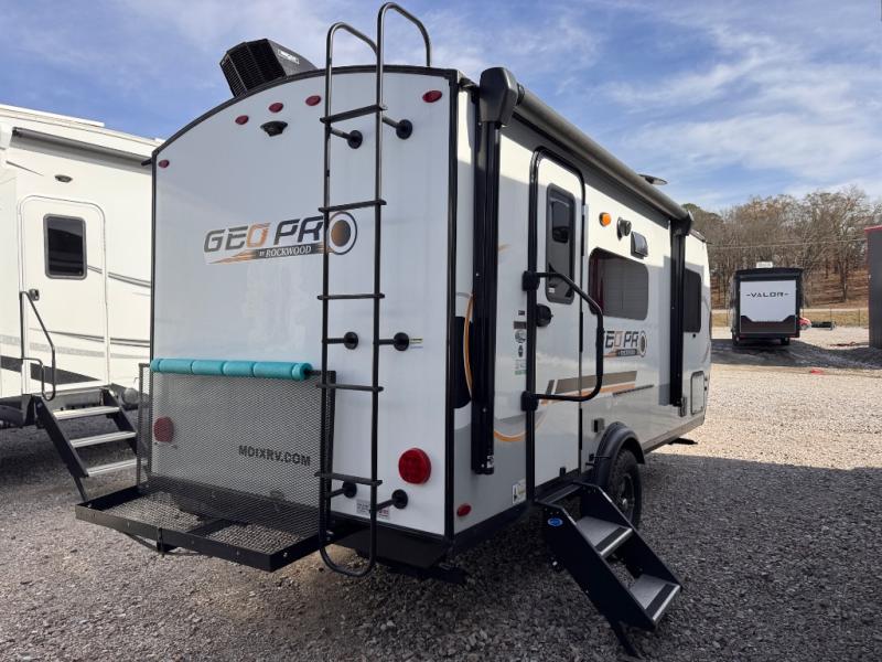 The Rockwood GEO Pro travel trailers and toy hauler by Forest River are ready for all your adventures. The interior and exterior Azdel construction, along with the vacuum laminated roof and walls provide a durable trailer, and the Dexter torsion axles with aluminum wheels make towing easier than ever. There are many convenient amenities, like the 13,500 BTU A/C, the Bluetooth system control panel, and the all-in-one Teton HD TV/WiFi/FM antenna with LTE prep. Each model includes frameless windows, fabric valances and roller shades, and a modern interior that will make you feel right at home. Everything you're looking for in your next RV is in a Rockwood GEO pro by Forest River!