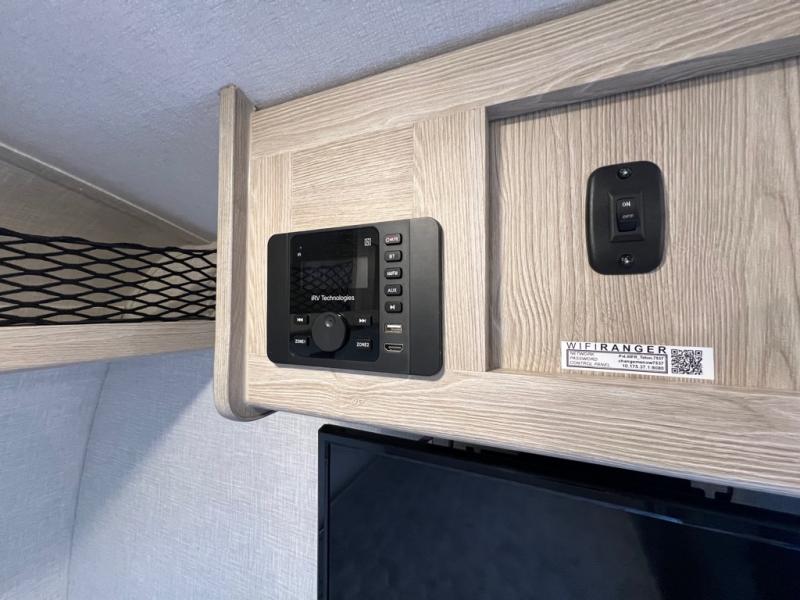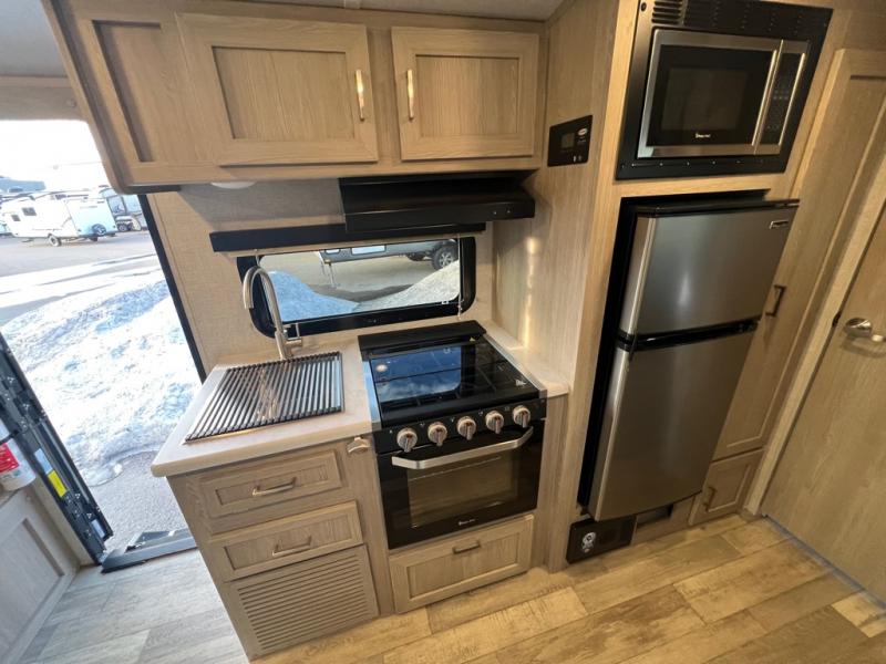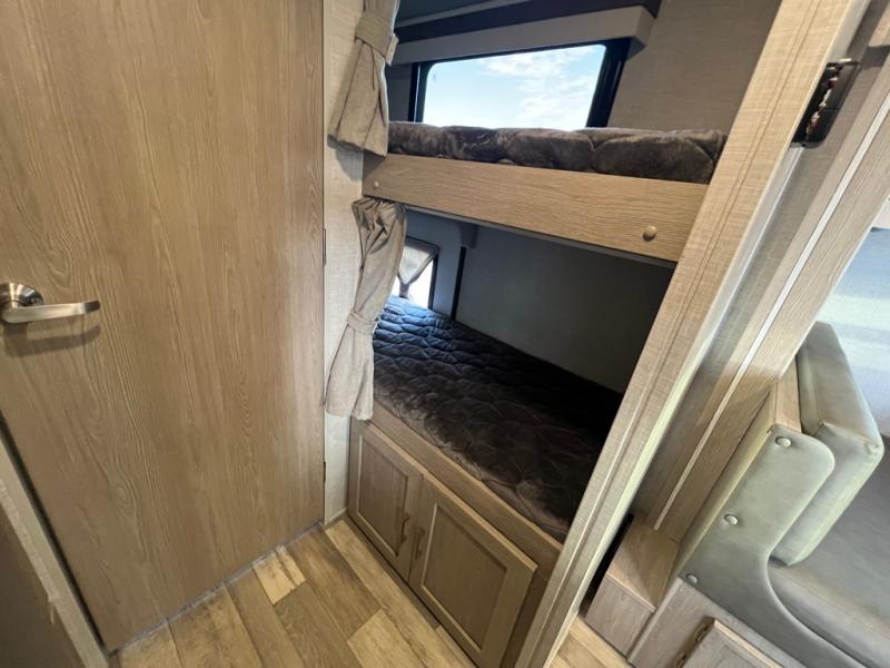 Your going to love camping with your family or friends in this largest bunk model in the GEO Pro lineup. The bunk beds will be perfect for little ones, while you take the front full-size bed. There is also a 44" booth dinette within the slide out for additional sleeping and seating space. The kitchen includes everything the chef will need to prepare meals each day, including a three burner cooktop, a microwave oven, and a 12V refrigerator for perishables. If the weather is nice, you may just find the chef outdoors cooking on the outside griddle under the 14' power awning. And check out the exterior bike door that will be perfect for bikes, luggage, or extra camp gear!