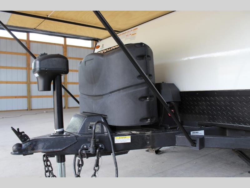 Whenever you decide to camp, hitch up and head out with your spouse or family of six or group of friends thanks to the two tent end beds and the U-shaped dinette slide out offering sleeping space for everyone! The interior also provides a three-way refrigerator, an oven and extra cabinet and counter space for your things. The cassette toilet offers convenience and the shower curtain allows you to wash off inside in privacy. The cook will enjoy having a slide out kitchen and griddle outdoors for more choices when feeding the crew, and the 13' awning offers some protection from the elements.