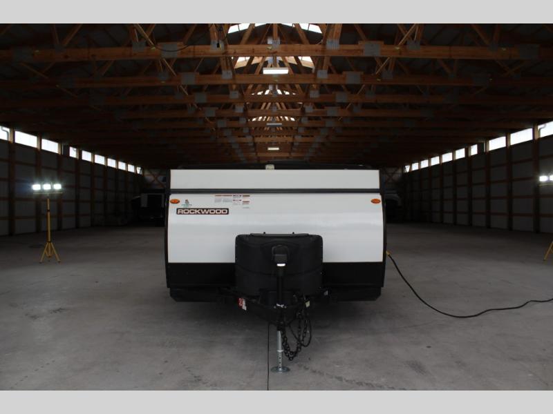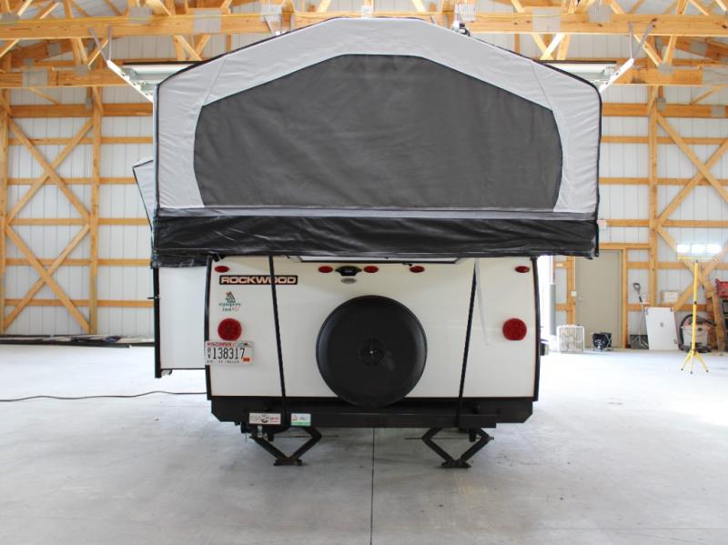 With any Forest River Rockwood High Wall folding pop-up camper, you will start with a powder coated tubular steel frame with five-piece Vinolon Supreme tenting, plus a power roof lift and four EZ crank down stabilizer jacks with sand pads for an easy and sturdy setup. The comfortable interior provides conveniences such as heated mattress bunk ends, a water filtration system, two bed end lights with a fan, and a hot water package including an outside shower. Choose a High Wall today for the travel trailer type amenities and the easy storage and towing capabilities!