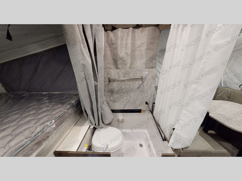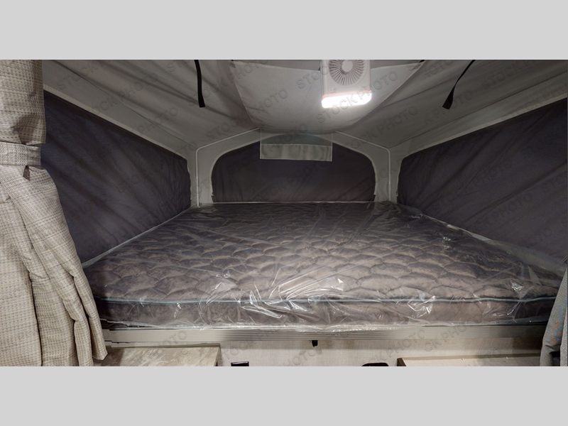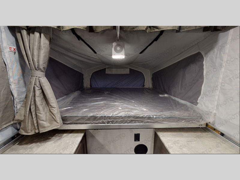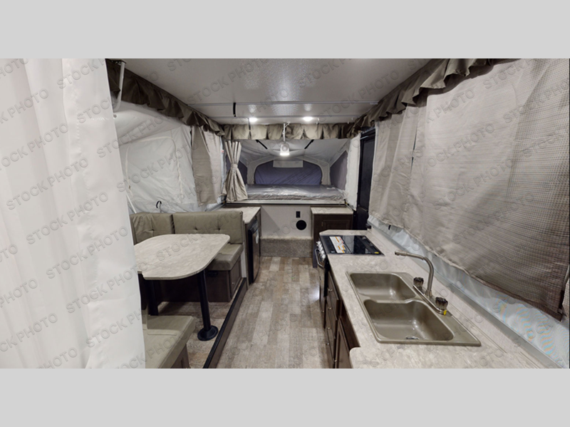 With any Forest River Rockwood High Wall folding pop-up camper, you will start with a powder coated tubular steel frame with five-piece Vinolon Supreme tenting, plus a power roof lift and four EZ crank down stabilizer jacks with sand pads for an easy and sturdy setup. The comfortable interior provides conveniences such as heated mattress bunk ends, a water filtration system, two bed end lights with a fan, and a hot water package including an outside shower. Choose a High Wall today for the travel trailer type amenities and the easy storage and towing capabilities!
