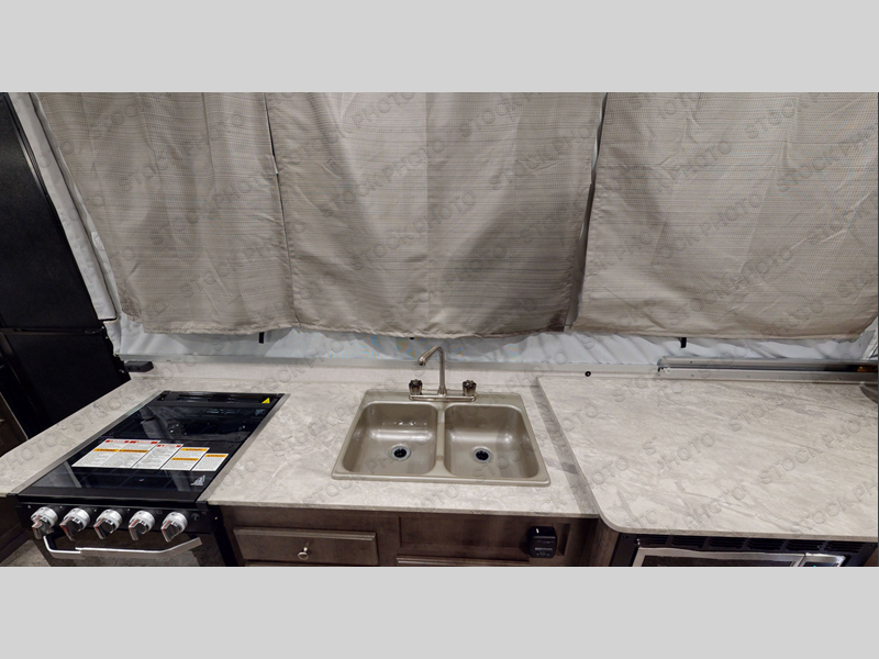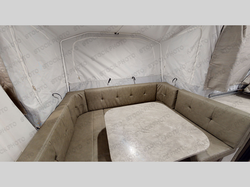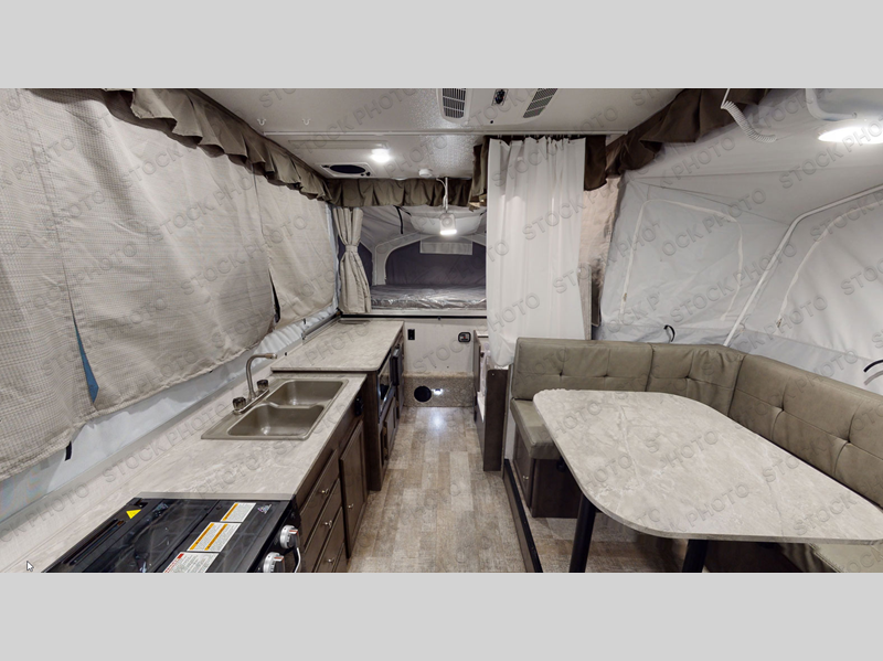 Whenever you decide to camp, hitch up and head out with your spouse or family of six or group of friends thanks to the two tent end beds and the U-shaped dinette slide out offering sleeping space for everyone! The interior also provides a three-way refrigerator, an oven and extra cabinet and counter space for your things. The cassette toilet offers convenience and the shower curtain allows you to wash off inside in privacy. The cook will enjoy having a slide out kitchen and griddle outdoors for more choices when feeding the crew, and the 13' awning offers some protection from the elements.