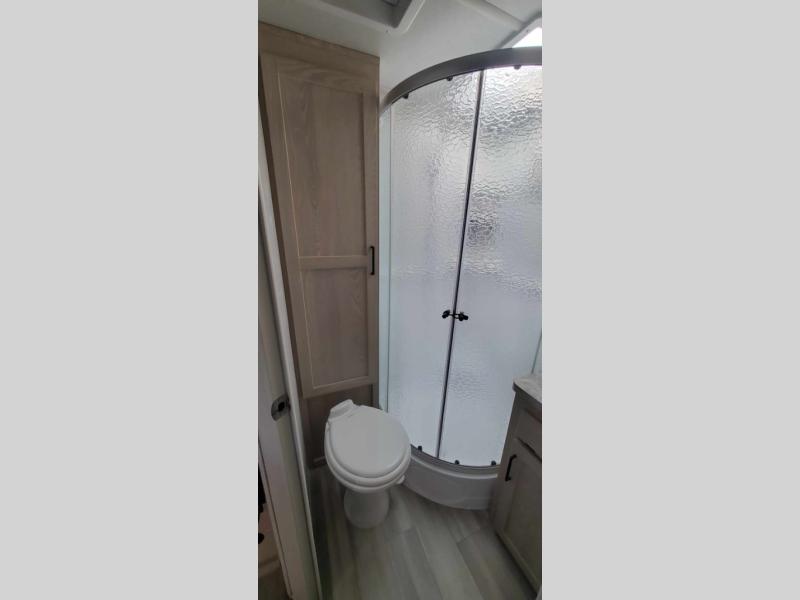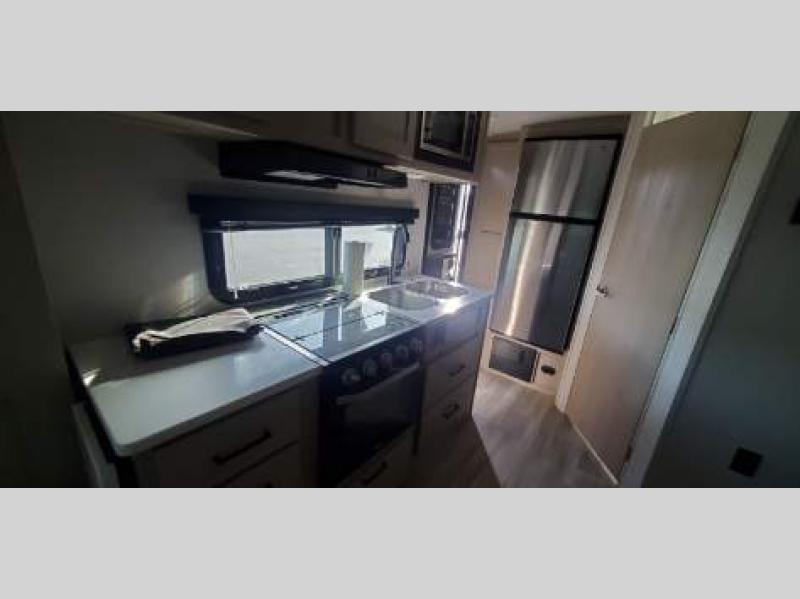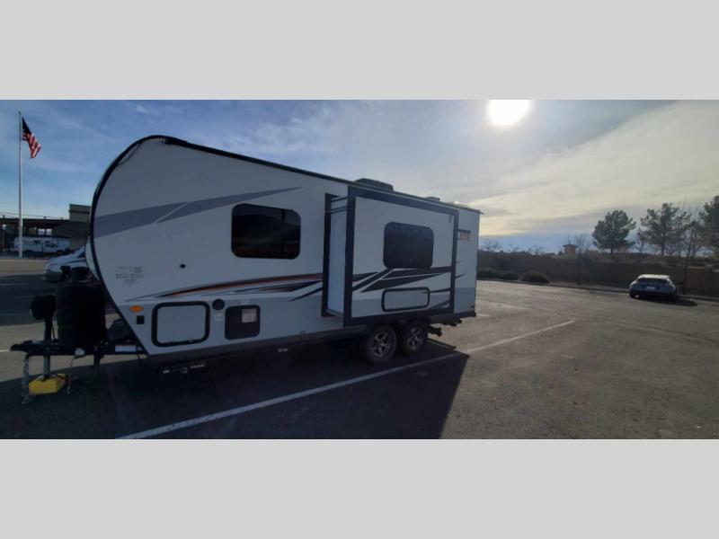 Wherever you decide to camp, you will love every minute in this cute couple's trailer. The sofa slide with a table will provide a place to relax, eat, and even sleep an extra guest if you have one, and the front RV queen bed includes a privacy curtain to enjoy your own space. There are dual bedroom wardrobes to keep your clothes tidy, and you'll find two pass-through storage compartments for your larger gear. An outside griddle with an LP hookup will allow you to make breakfast outdoors, and there is a three burner cooktop indoors if the weather isn't cooperating. Since there is a full bath on board you won't have to use the camp's facilities, and you can make it a movie night with the LED TV in the main living area!