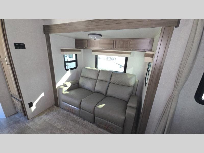 Each Rockwood Mini Lite travel trailer by Forest River is constructed with a fully laminated one-piece walkable roof, sleek frameless windows, and a six-sided full aluminum frame for strength and durability. The 12V thermostatically controlled heated tanks, plus radiant foil in the underbelly, front caps, and slide out floors will allow you to camp well into the colder months, and the 190W roof solar panel will be perfect for a little off-gridding. Each model includes solid surface kitchen countertops, solid wood cabinet doors, night roller shades, plus many more interior features. Having a Teton all in one Wi-Fi booster/LTE prep and antenna on board will allow you to get some work done if it's needed, and the power tongue jack provides hassle-free set up, so you can enjoy more time relaxing!