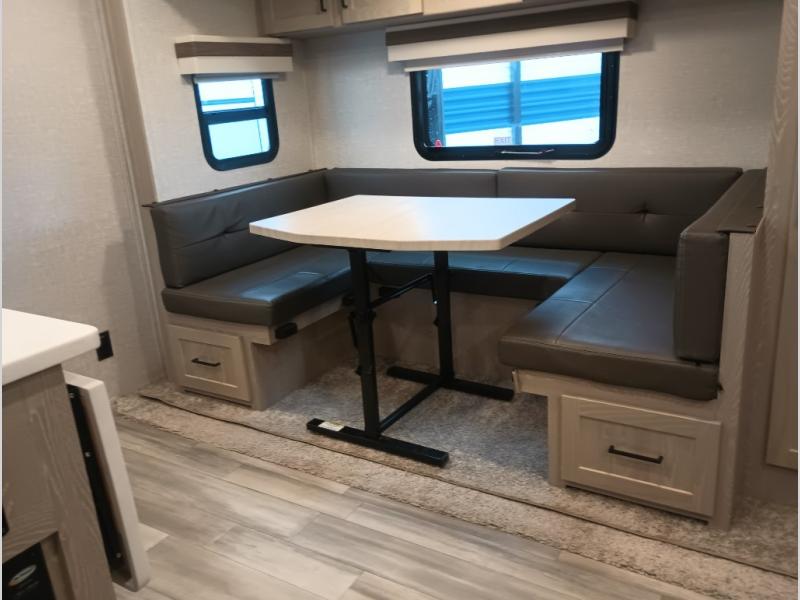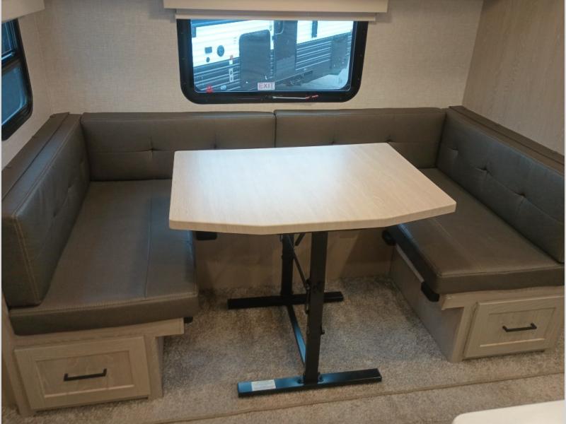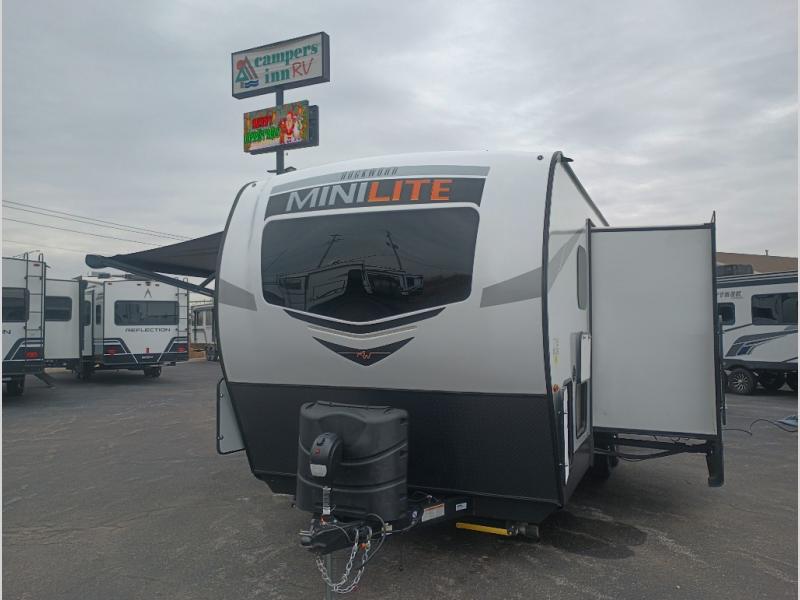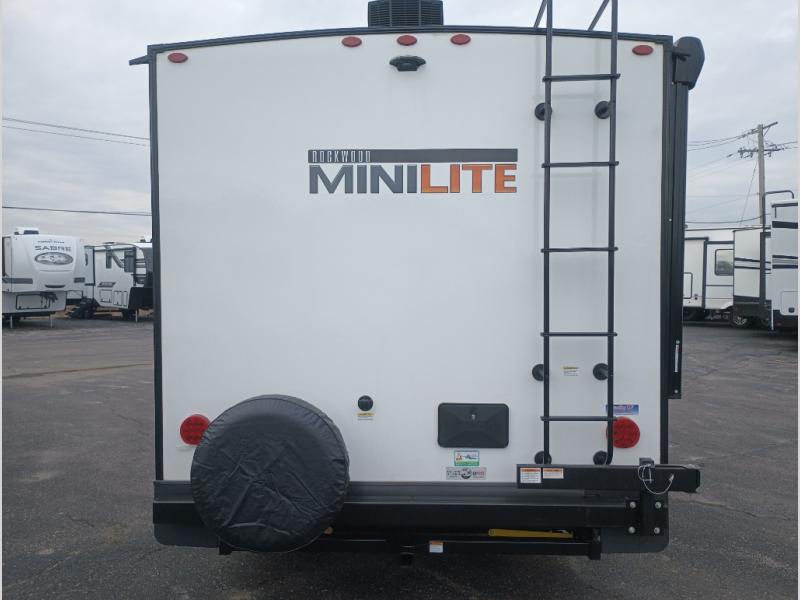 Each Rockwood Mini Lite travel trailer by Forest River is constructed with a fully laminated one-piece walkable roof, sleek frameless windows, and a six-sided full aluminum frame for strength and durability. The 12V thermostatically controlled heated tanks, plus radiant foil in the underbelly, front caps, and slide out floors will allow you to camp well into the colder months, and the 190W roof solar panel will be perfect for a little off-gridding. Each model includes solid surface kitchen countertops, solid wood cabinet doors, night roller shades, plus many more interior features. Having a Teton all in one Wi-Fi booster/LTE prep and antenna on board will allow you to get some work done if it's needed, and the power tongue jack provides hassle-free set up, so you can enjoy more time relaxing!