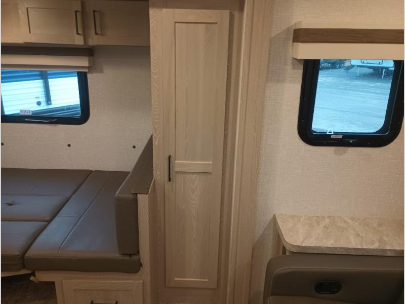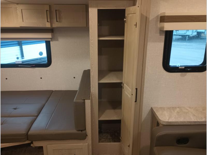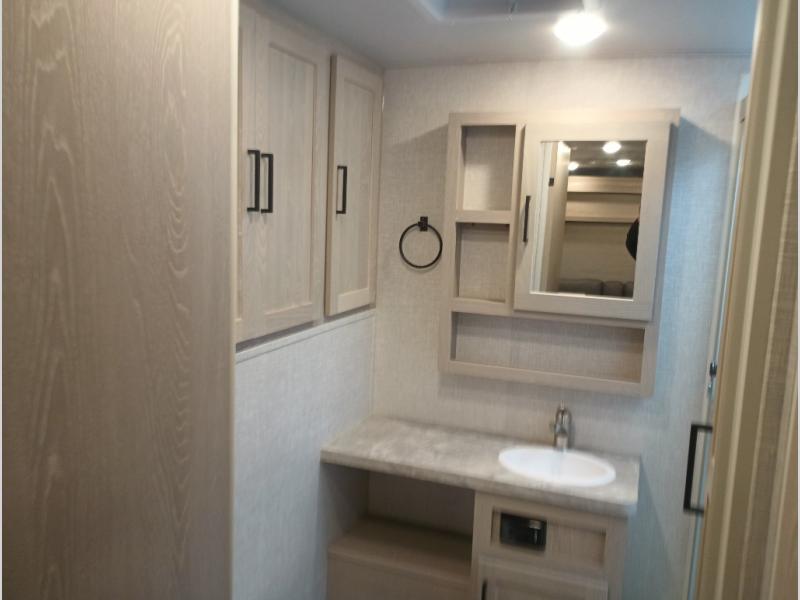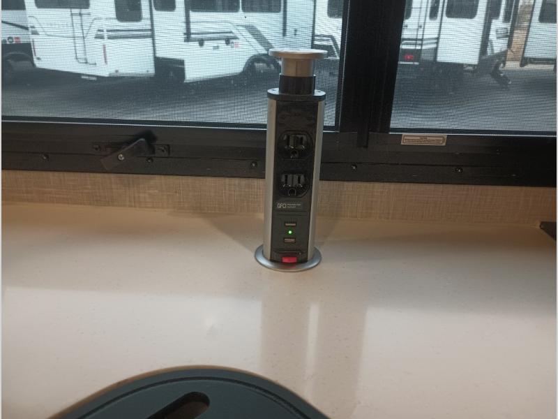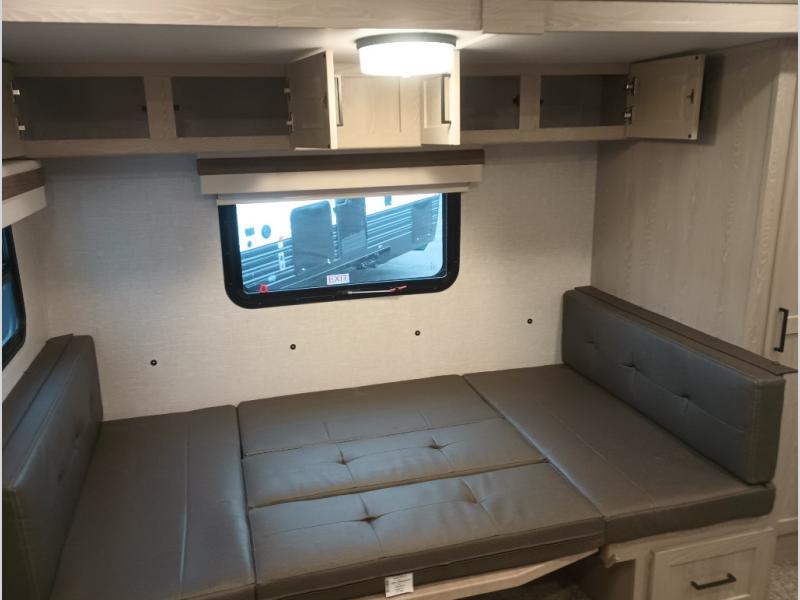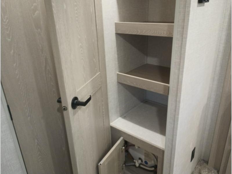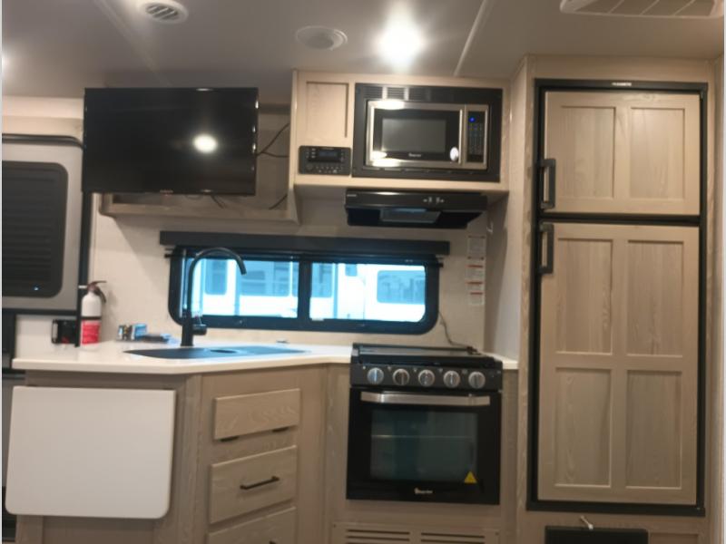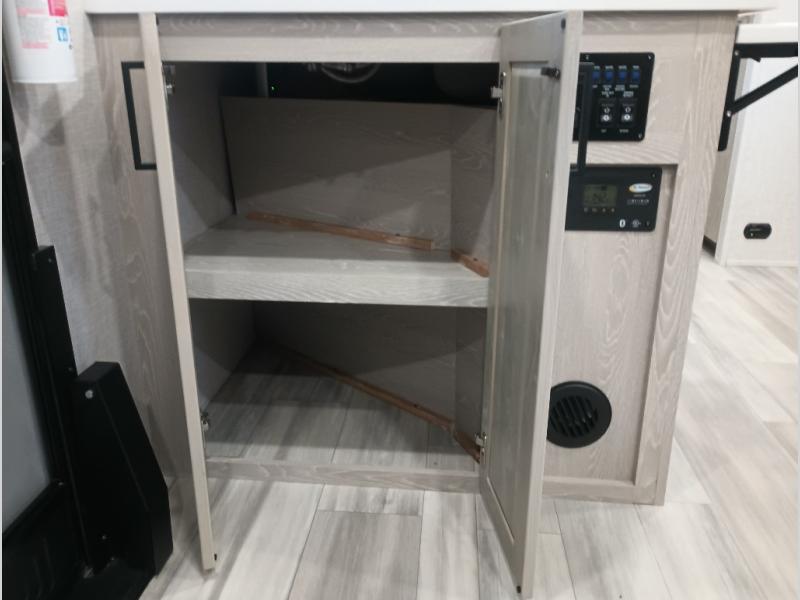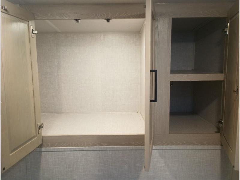 You can't beat this travel trailer with an outside kitchen, tons of exterior storage, and a versatile Murphy bed up front! When your crew isn't outside under the 19' power awning, they can head indoors to play a game around the U-shaped dinette, or watch a movie on the LED TV. There is also a 72" sofa here when the bed is folded away, and everyone will appreciate the spacious full rear bath for privacy. This model includes plenty of exterior space, but you'll be impressed by the interior storage space as well; dual bedroom wardrobes, a wardrobe within the slide out, plus a lean-in pantry in the kitchen for snacks!