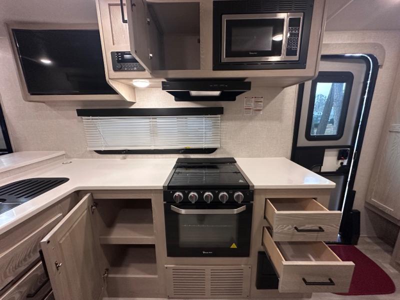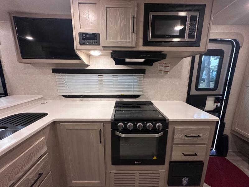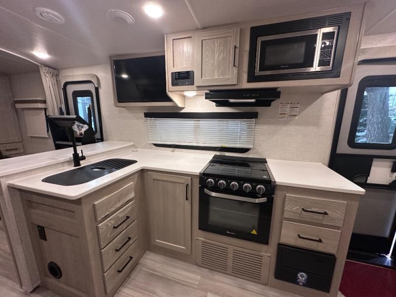 Each Rockwood Mini Lite travel trailer by Forest River is constructed with a fully laminated one-piece walkable roof, sleek frameless windows, and a six-sided full aluminum frame for strength and durability. The 12V thermostatically controlled heated tanks, plus radiant foil in the underbelly, front caps, and slide out floors will allow you to camp well into the colder months, and the 190W roof solar panel will be perfect for a little off-gridding. Each model includes solid surface kitchen countertops, solid wood cabinet doors, night roller shades, plus many more interior features. Having a Teton all in one Wi-Fi booster/LTE prep and antenna on board will allow you to get some work done if it's needed, and the power tongue jack provides hassle-free set up, so you can enjoy more time relaxing!