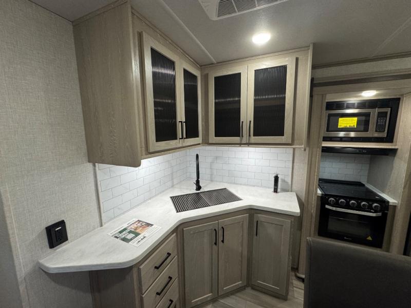 Each Rockwood Signature Ultra Lite fifth wheel and travel trailer by Forest River is constructed with a radiant foil insulated underbelly, laminated fiberglass sidewalls, and tinted frameless windows for a more sleek look. Enjoy hassle-free towing thanks to the torsion axle Rubber-Ryde suspension system, and you'll also appreciate the tire pressure monitoring system with a monitor and the rear observation camera prep. Each model includes LED TV's, a multi zone stereo with DVD/CD/AM/FM and Bluetooth, plus outside speakers for all your entertainment needs. You'll find that the carpetless main bedroom floor will be so easy to clean, and the under-bed storage will allow you to easily store your luggage once you've unpacked. These fifth wheels and travel trailers also include designer kitchen backsplash, beautiful Newport Ash or Autumn wood cabinetry, and a fireplace on most models.