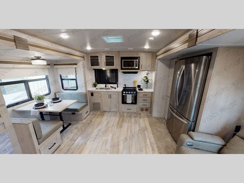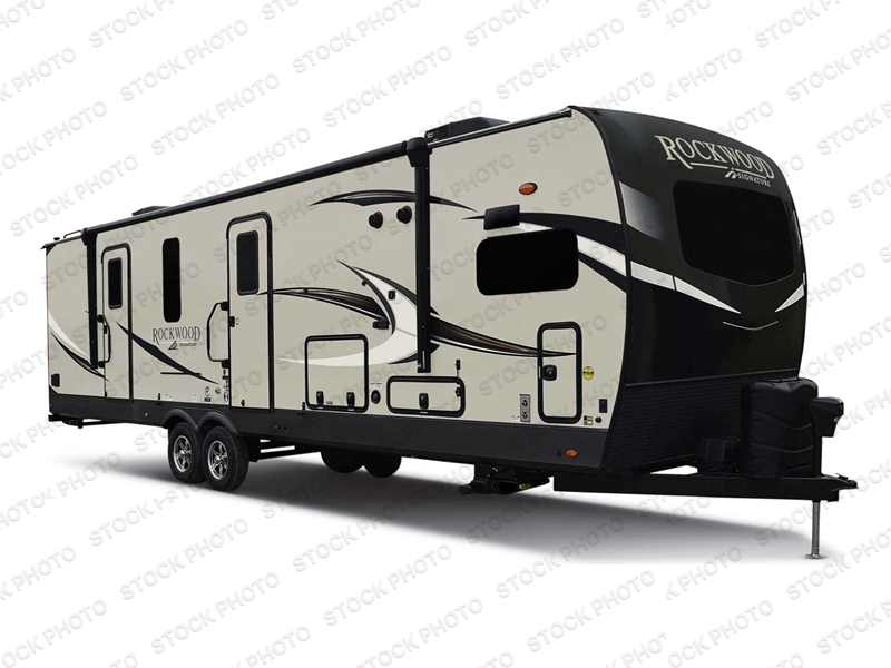 Each Rockwood Signature Ultra Lite fifth wheel and travel trailer by Forest River is constructed with a radiant foil insulated underbelly, laminated fiberglass sidewalls, and tinted frameless windows for a more sleek look. Enjoy hassle-free towing thanks to the torsion axle Rubber-Ryde suspension system, and you'll also appreciate the tire pressure monitoring system with a monitor and the rear observation camera prep. Each model includes LED TV's, a multi zone stereo with DVD/CD/AM/FM and Bluetooth, plus outside speakers for all your entertainment needs. You'll find that the carpetless main bedroom floor will be so easy to clean, and the under-bed storage will allow you to easily store your luggage once you've unpacked. These fifth wheels and travel trailers also include designer kitchen backsplash, beautiful Newport Ash or Autumn wood cabinetry, and a fireplace on most models.