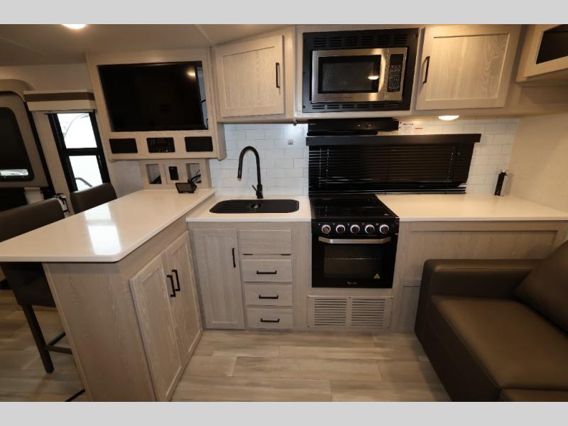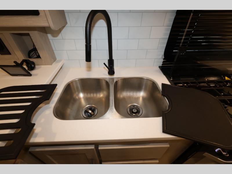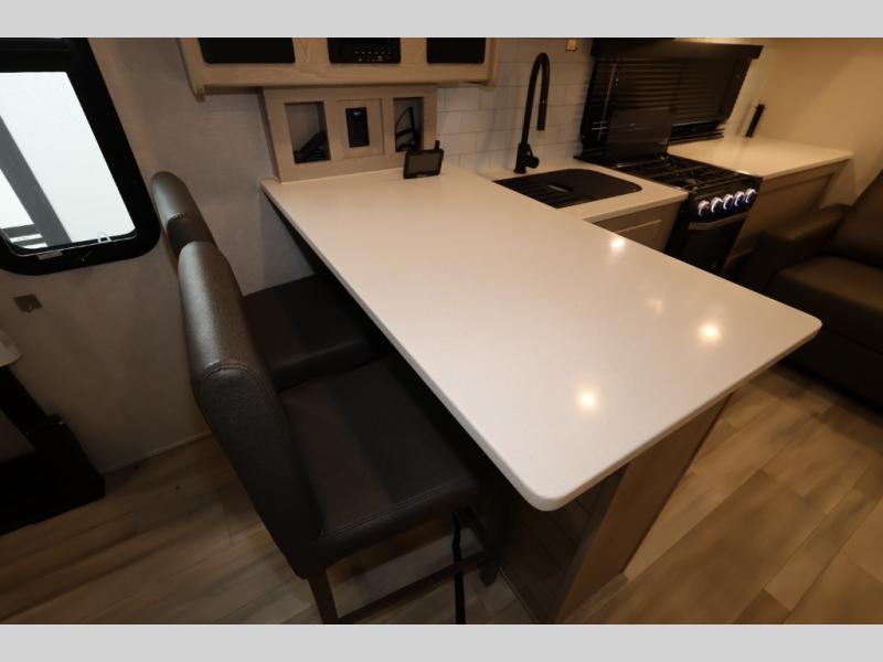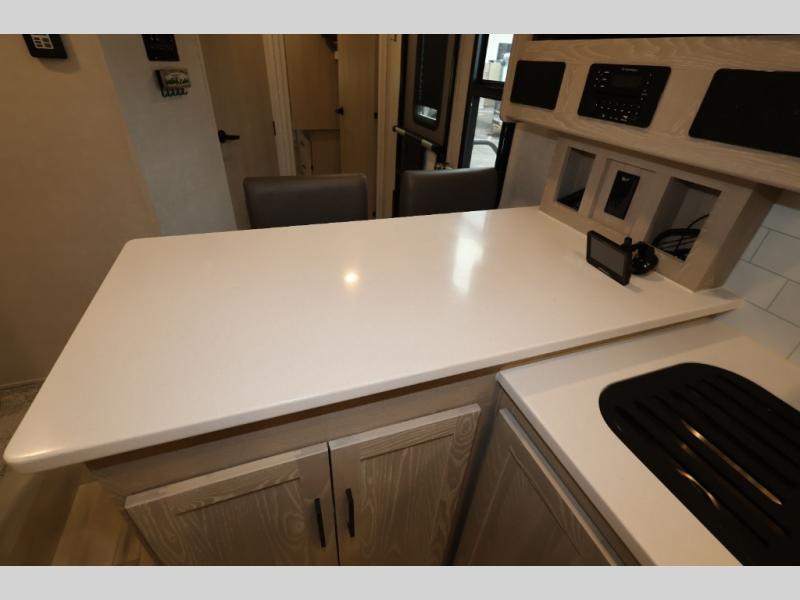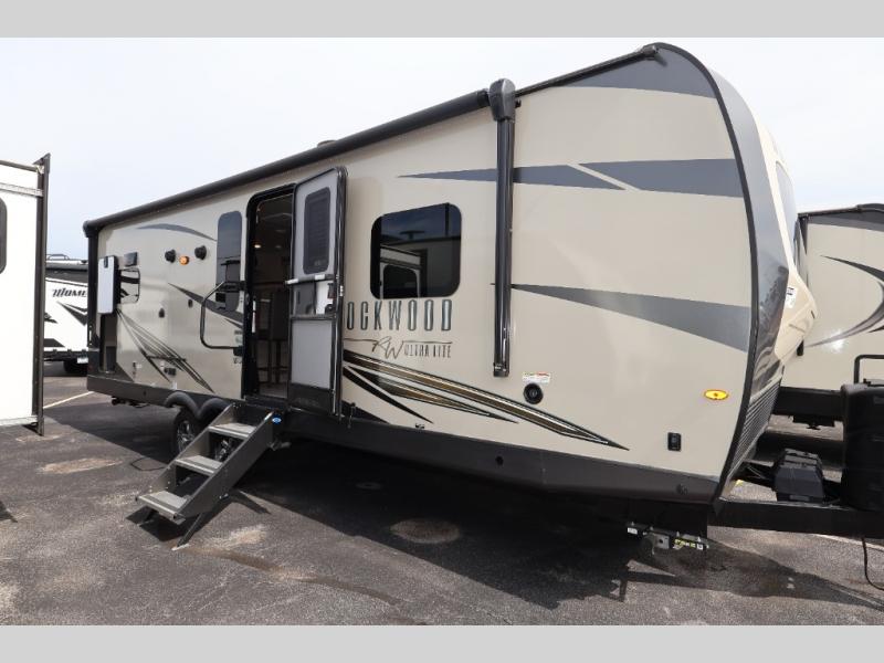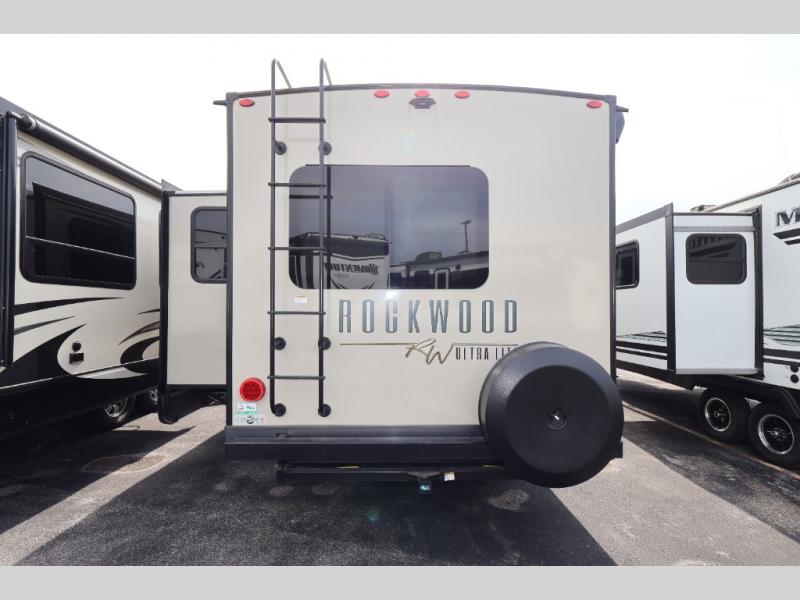 With any Rockwood Ultra Lite fifth wheel and travel trailer by Forest River RV, the superior construction includes a painted fiberglass front cap with clear coat, a full laminated one-piece walkable roof, aluminum truss roof bracing, and a six-sided full aluminum frame. Some safety standards include Dexter torsion axles, MORryde strut assist steps, and the TST tire pressure monitor system. The interior offers the OneControl panel with WeRV app control, screwed and glued, solid wood cabinet doors and drawers with hidden hinges, metal drawer glides and residential or upgraded hardware, solid surface kitchen countertops, and a designer kitchen backsplash. You'll also find solid surface kitchen countertops, designer kitchen backsplash, plus many more features depending on the Rockwood Ultra Lite you choose!