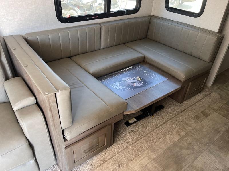 With any Rockwood Ultra Lite fifth wheel and travel trailer by Forest River RV, the superior construction includes a painted fiberglass front cap with clear coat, a full laminated one-piece walkable roof, aluminum truss roof bracing, and a six-sided full aluminum frame. Some safety standards include Dexter torsion axles, MORryde strut assist steps, and the TST tire pressure monitor system. The interior offers the OneControl panel with WeRV app control, screwed and glued, solid wood cabinet doors and drawers with hidden hinges, metal drawer glides and residential or upgraded hardware. You'll also find solid surface kitchen countertops, designer kitchen backsplash, plus many more features depending on the Rockwood Ultra Lite you choose!