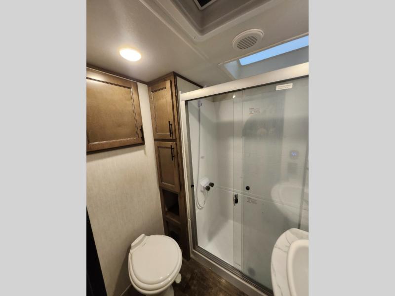 You will experience luxurious camping trips at an affordable price with any one of these Forest River Sabre fifth wheels! These models are durable and ready to travel anytime of the year thanks to features like the high-gloss gel-coat front cap with LED lighting, the PVC roof membrane, and the forced air underbelly with enclosed gate valves. The electric auto-leveling system makes setting up easy and safe, and the adjustable power awning with LED lighting will create an inviting outdoor living space. Each model includes a universal docking station which includes a black tank flush and an outside shower, and the backlit "Secure Step" landing for you to enter and exit the unit safely. Inside, you will love the design of the ambient accent lighting above the crown molding in the living area, the real wood lumbercore cabinetry, and the vintage gaslight decorative lighting!