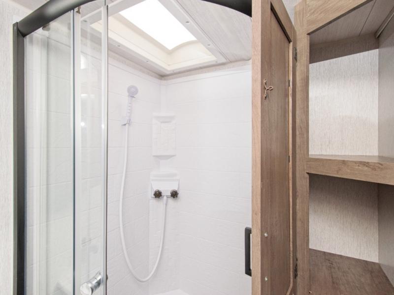 Start your day fresh in the full rear bathroom with a radius walk-in shower, plus a closet for towels and toiletries.