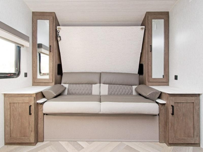 Up front, the Easy Bed Lift System transforms your space—enjoy a queen bed at night and a Jiffy sofa during the day for lounging.