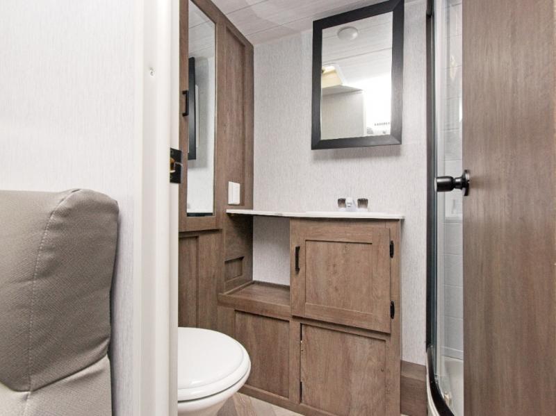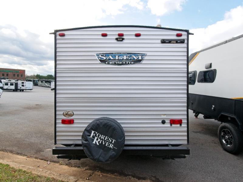 Tow with confidence and camp in comfort with the Forest River Salem Cruise Lite 171RBXL, featuring a lightweight design under 4,000 lbs. and a full rear bathroom with a walk-in shower.