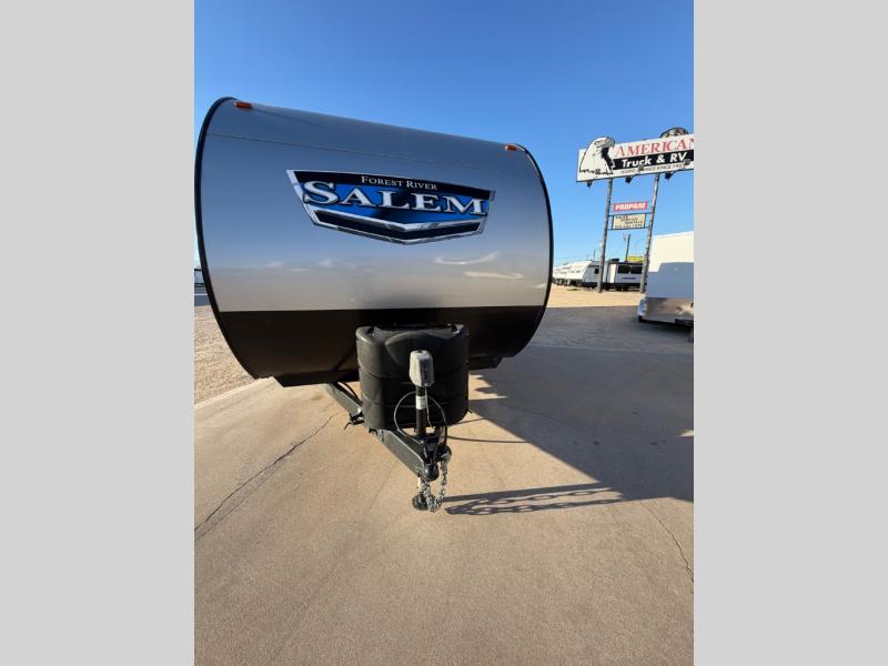 Enjoy years and years of memories with any one of these Forest River Salem travel trailers! They are built with a one piece, SuperFlex roof, a powder coated I-beam frame, and an aerodynamic front radius profile for an easier tow. The triple seal slide out system prevents water from seeping inside and keeps it outside where it belongs. The Salem Best In Class Value Package includes upgraded designer furniture, seamless countertops with no T-mold, and two zone residential soundbars with FM, Bluetooth, HDMI and USB. You will also appreciate the heated and enclosed Accessi-Belly with removable underbelly panels, the power tongue jack with an LED light, the designated CPAP storage, plus many more convenient features. Come see all of the other new features today!