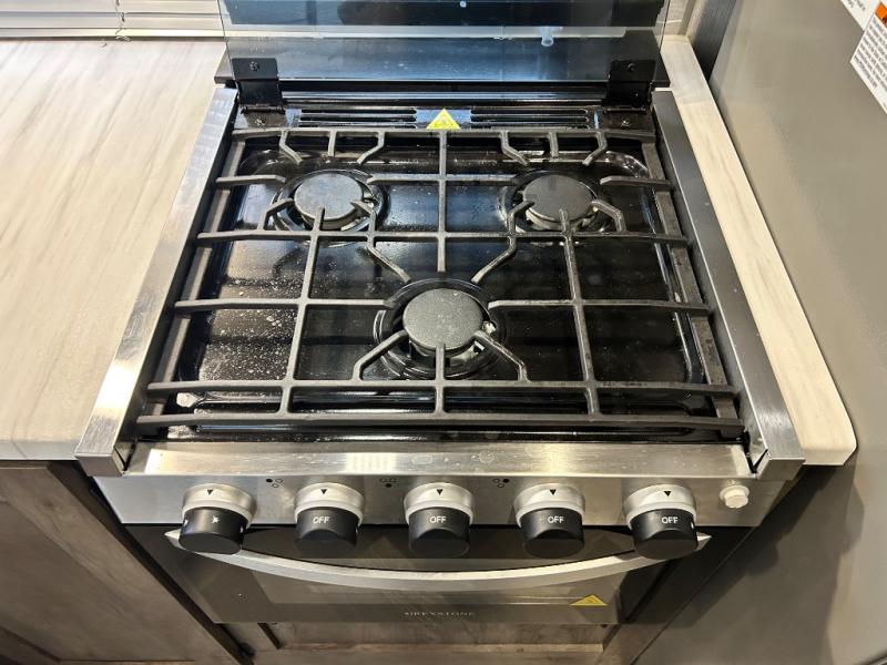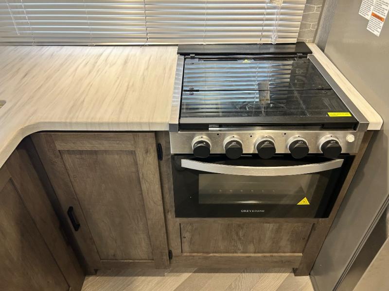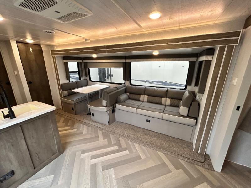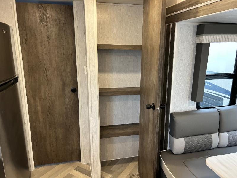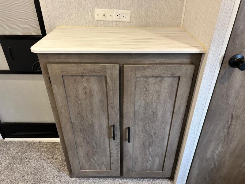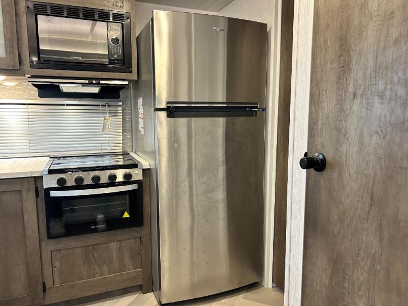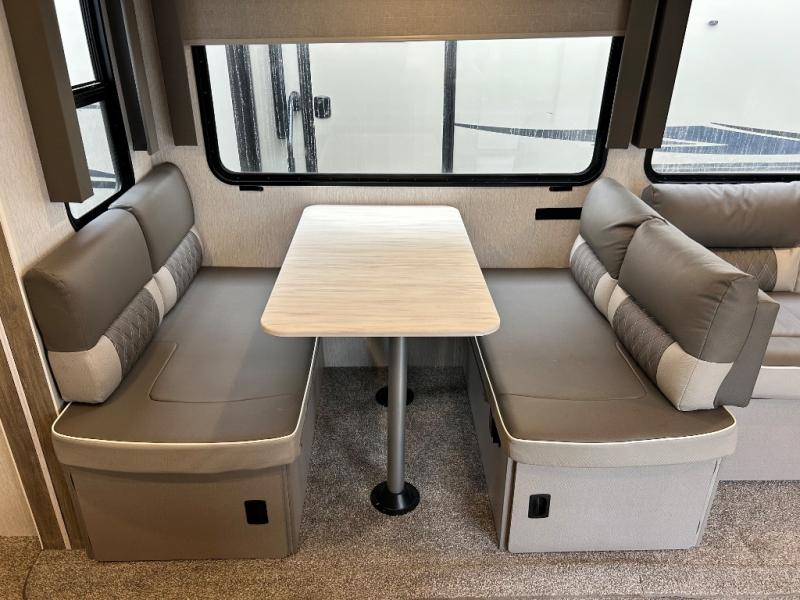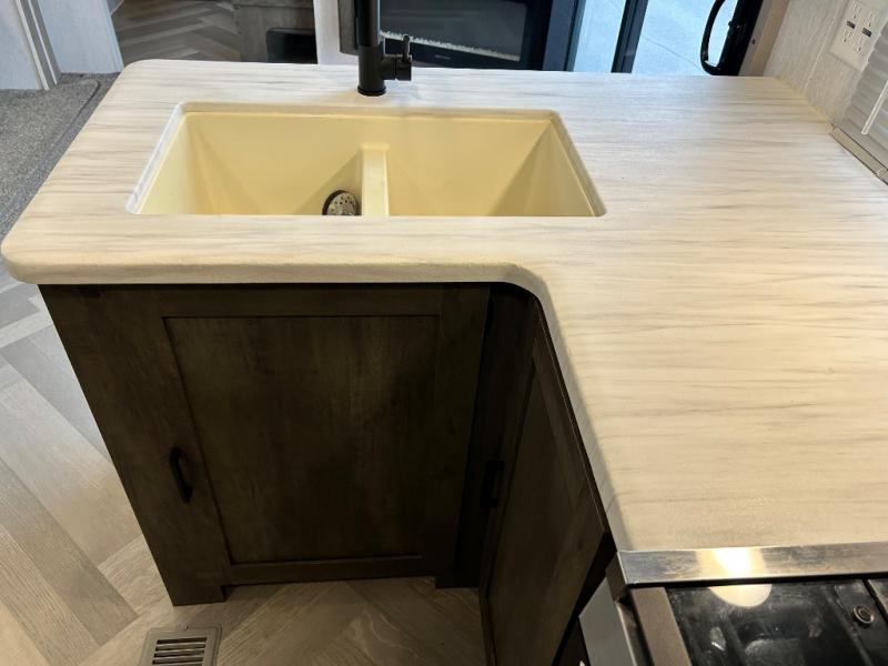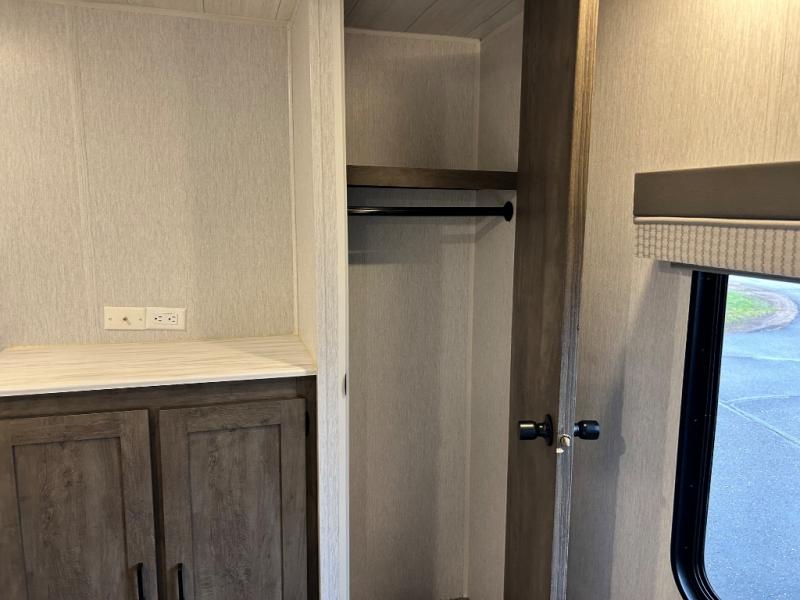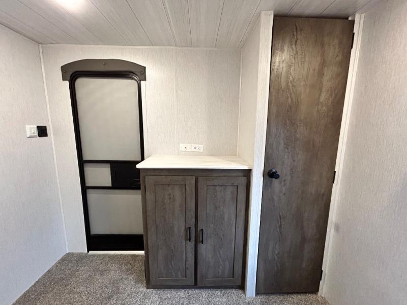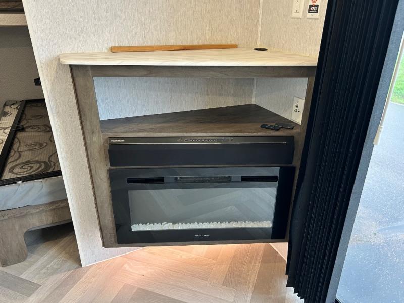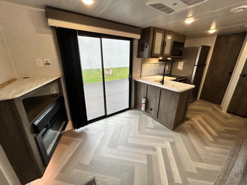 After you've had a long day of sightseeing and adventuring, you will certainly appreciate having this Salem travel trailer to come back to! If you aren't ready to stay indoors for the night, you can keep the party going outside under the 18' awning, and if you need any extra lawn chairs, you can grab them from the pass-through storage compartment. And, you don't have to stop enjoying a good fire just because you have to go inside because the interior fireplace will provide great ambiance. There are dual entry doors which will definitely come in handy when camping with a large group, and there is plenty of seating space on the booth dinette and versa lounge in the main living area.