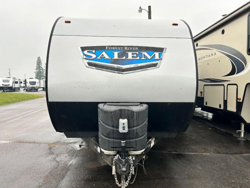 Enjoy years and years of memories with any one of these Forest River Midwest Salem travel trailers! They are built with a one piece, SuperFlex roof, a powder coated I-beam frame, and an aerodynamic front radius profile for an easier tow. The triple seal slide out system prevents water from seeping inside and keeps it outside where it belongs. The Salem Best In Class Value Package includes upgraded designer furniture, seamless countertops with no T-mold, and two zone residential soundbars with FM, Bluetooth, HDMI and USB. You will also appreciate the heated and enclosed Accessi-Belly with removable underbelly panels, the power tongue jack with an LED light, the designated CPAP storage, plus many more convenient features. Come see all of the other new features today!