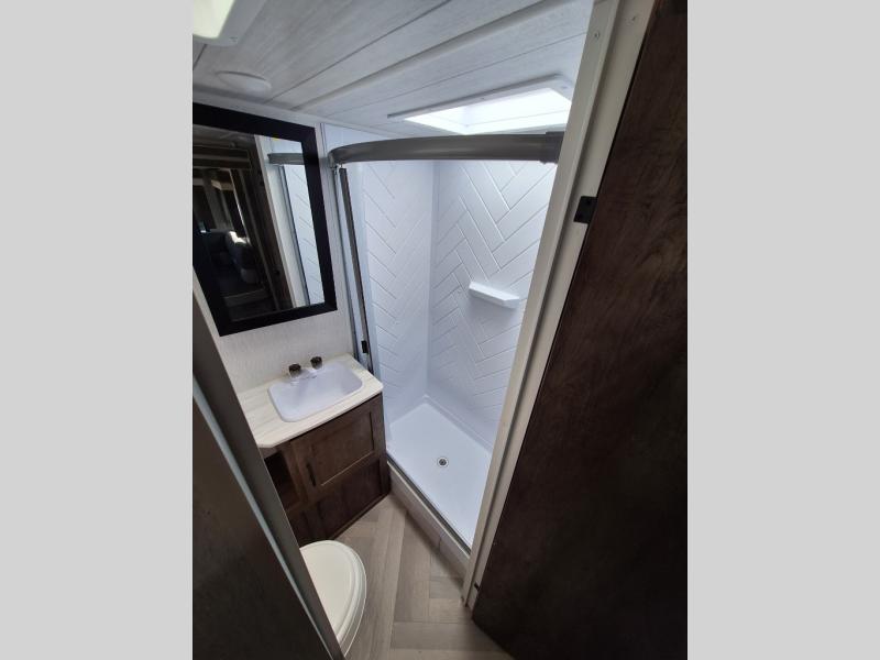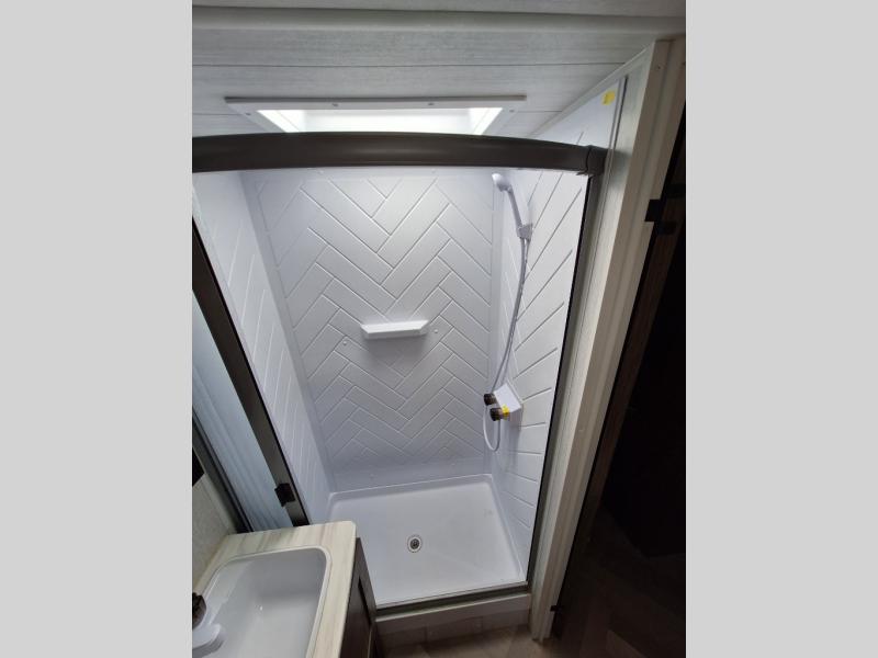 Each one of these Forest River Salem Cruise Lite travel trailers offer quality and value with a full list of great features! They are built with a fully walkable, one piece SuperFlex roof, a powder coated I-beam frame, a cambered chassis, and has R-7 fiberglass insulation throughout to keep the heat in during the winter and the cool air in from the 13.5k A/C during the summer. The aerodynamic front radius profile makes it easier to tow these units, and the diamond plate rock guard will keep your unit protected while traveling down the road. Some of the new features you will enjoy are the upgraded door pulls, the skylight over the shower, the roof-mounted solar prep, and much more!